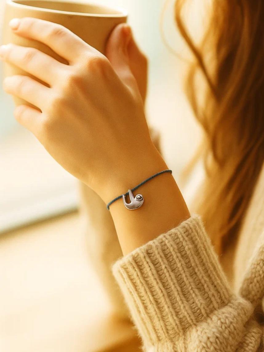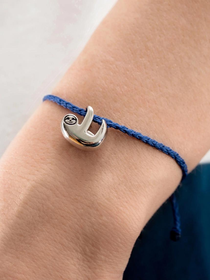 Этот браслет с темно-синей нитью и серебристым шармом в форме ленивца - идеальный выбор для любителей животных и природы.