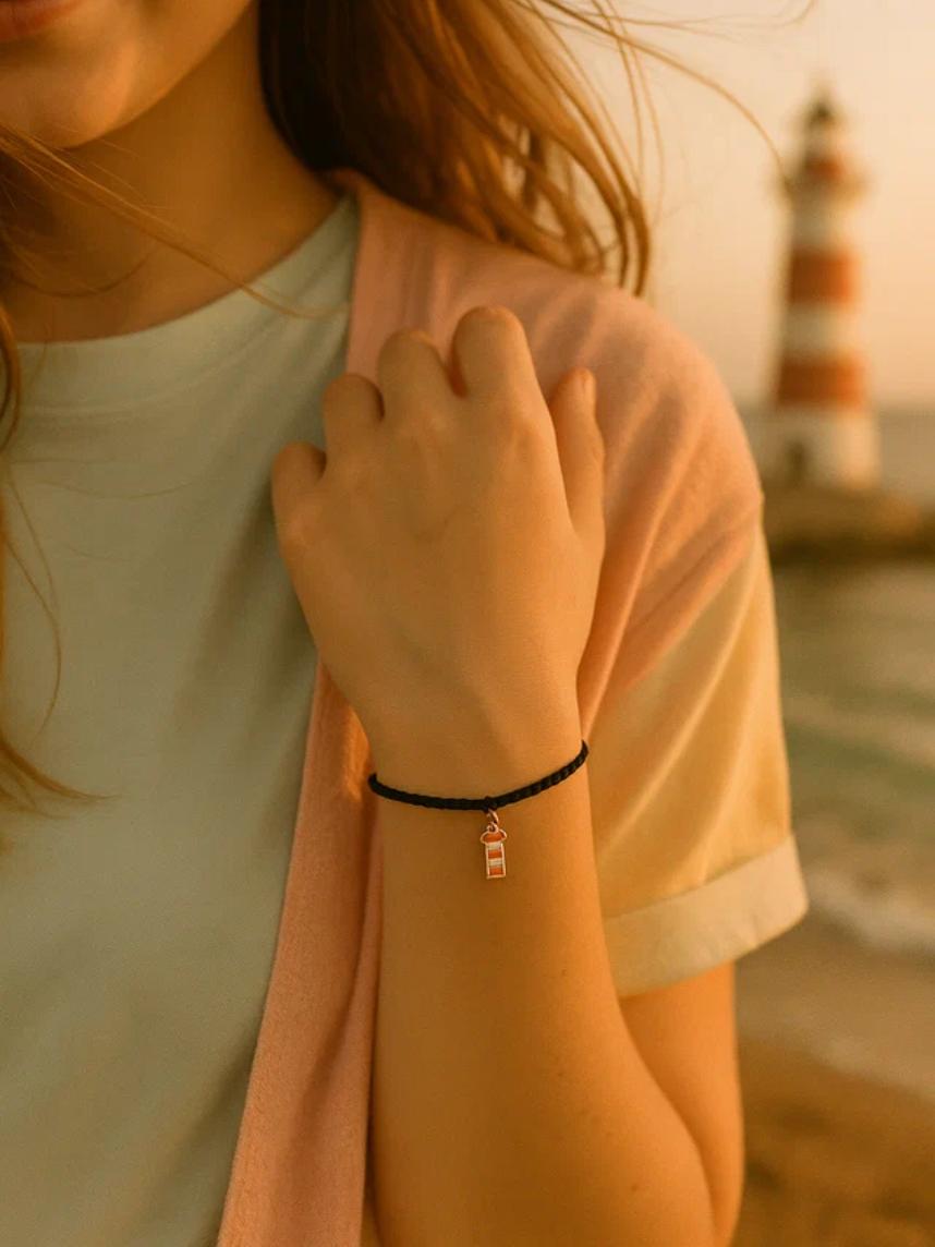 Плетёный браслет с металлическим шармом «Маяк» — символ света и верного пути.