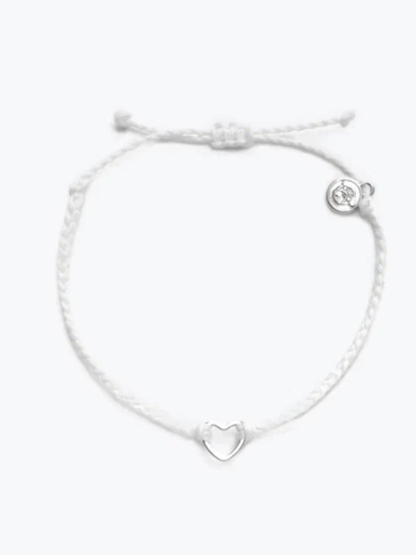 Этот браслет с белой нитью и серебристым шармом в форме сердца будет идеальным подарком для любого случая.