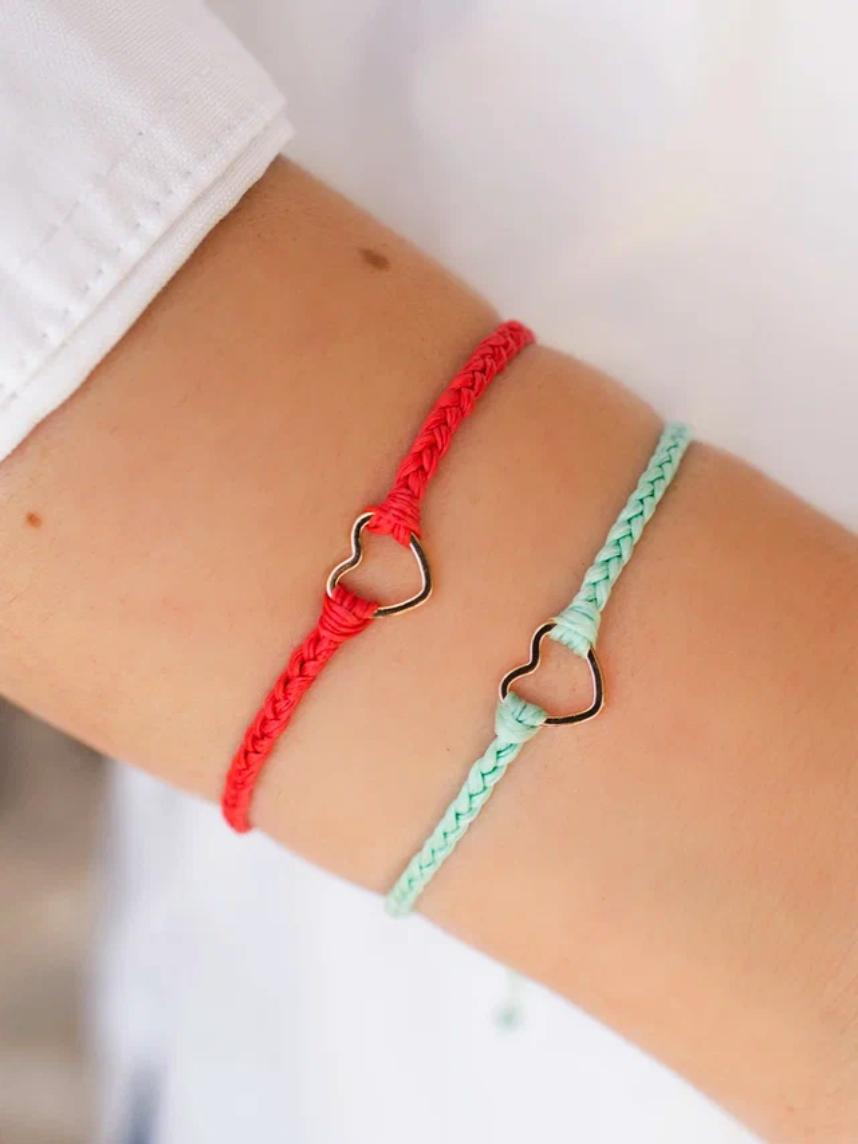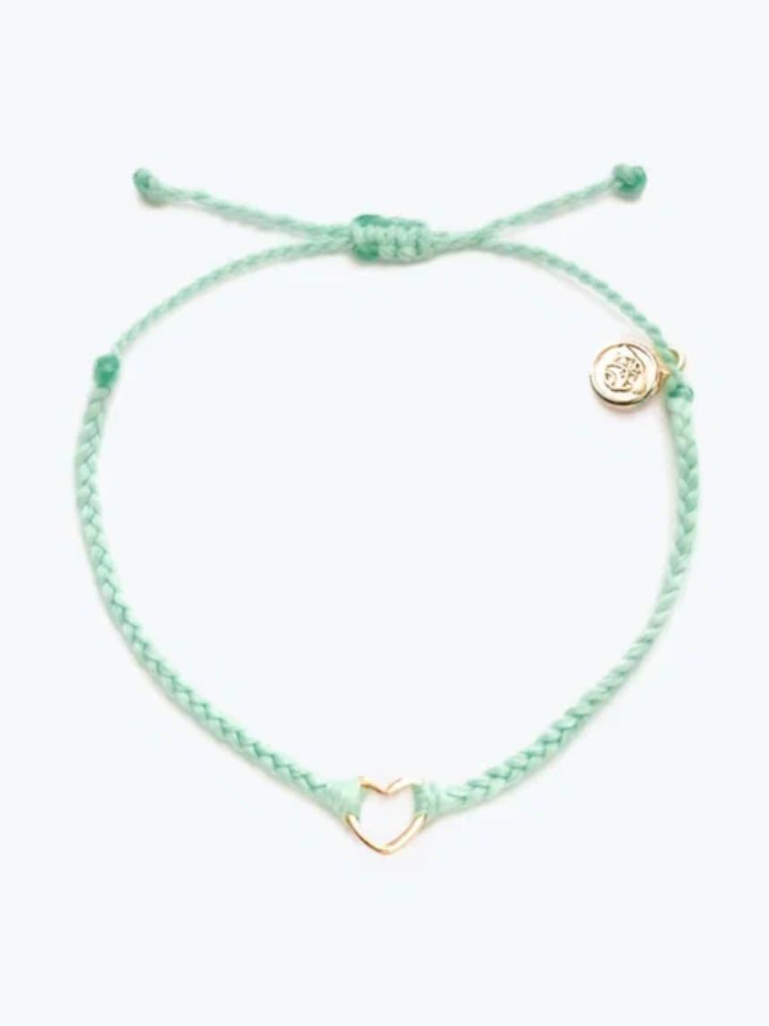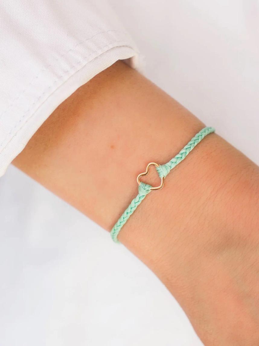 Браслет с мятной нитью и золотистым шармом с сердцем - это очаровательный аксессуар для любой девушки, которая любит нежные оттенки и символ любви.