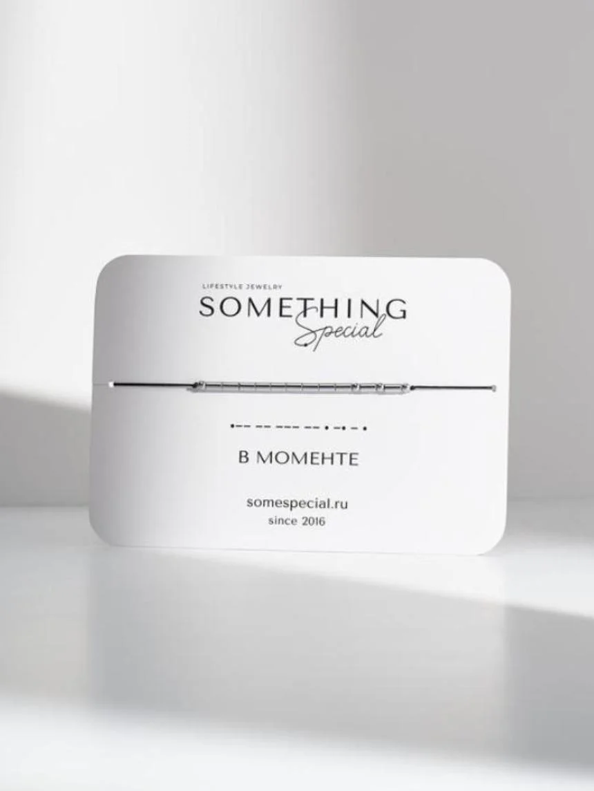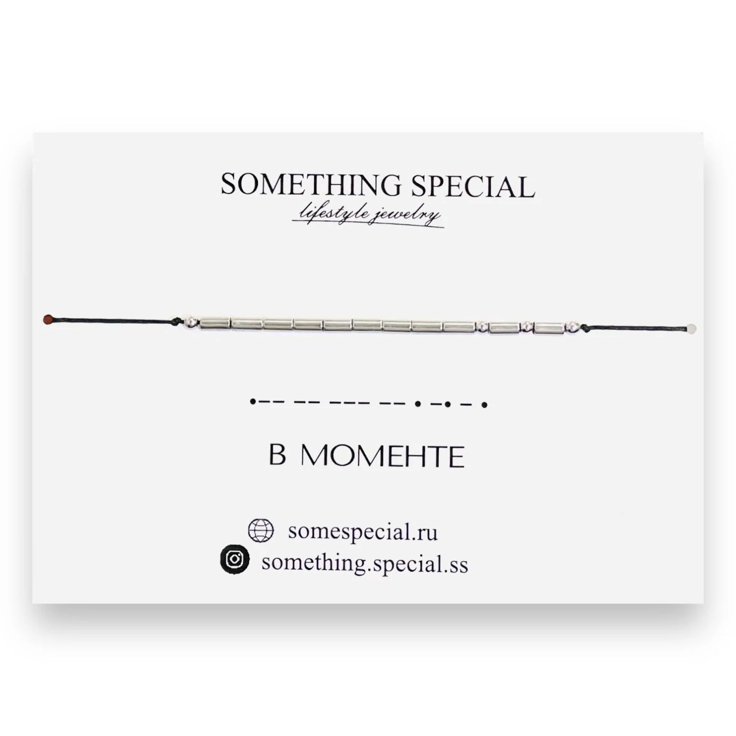 Браслет Something Special язык Морзе «В моменте» на чёрной нити