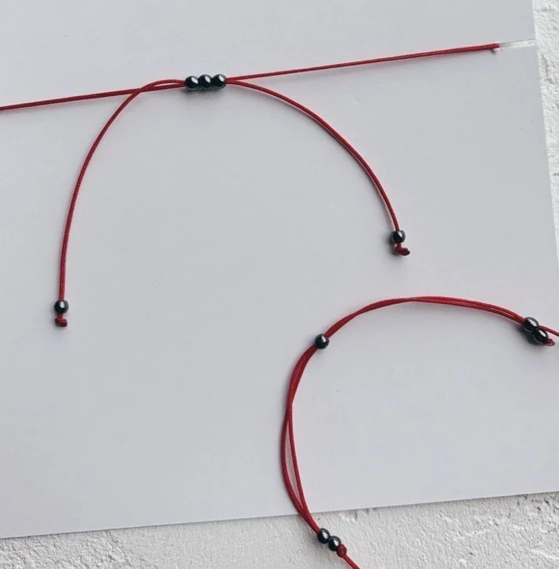 У каждого браслета на обороте есть маленькая бусина гематита – это для того, чтобы узлы не соприкасались.