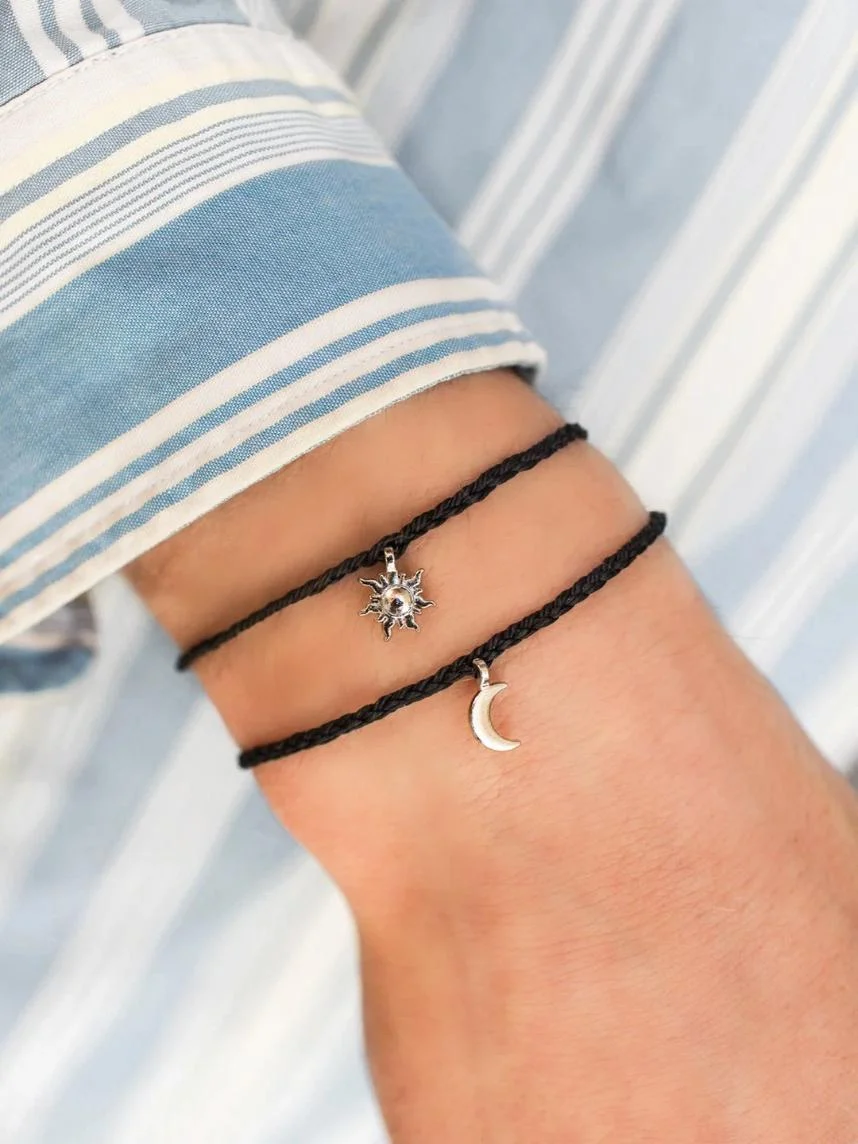 Эти парные браслеты с шармами солнцем и луной — это символ вечного сопричастия и духовной связи двух душ.