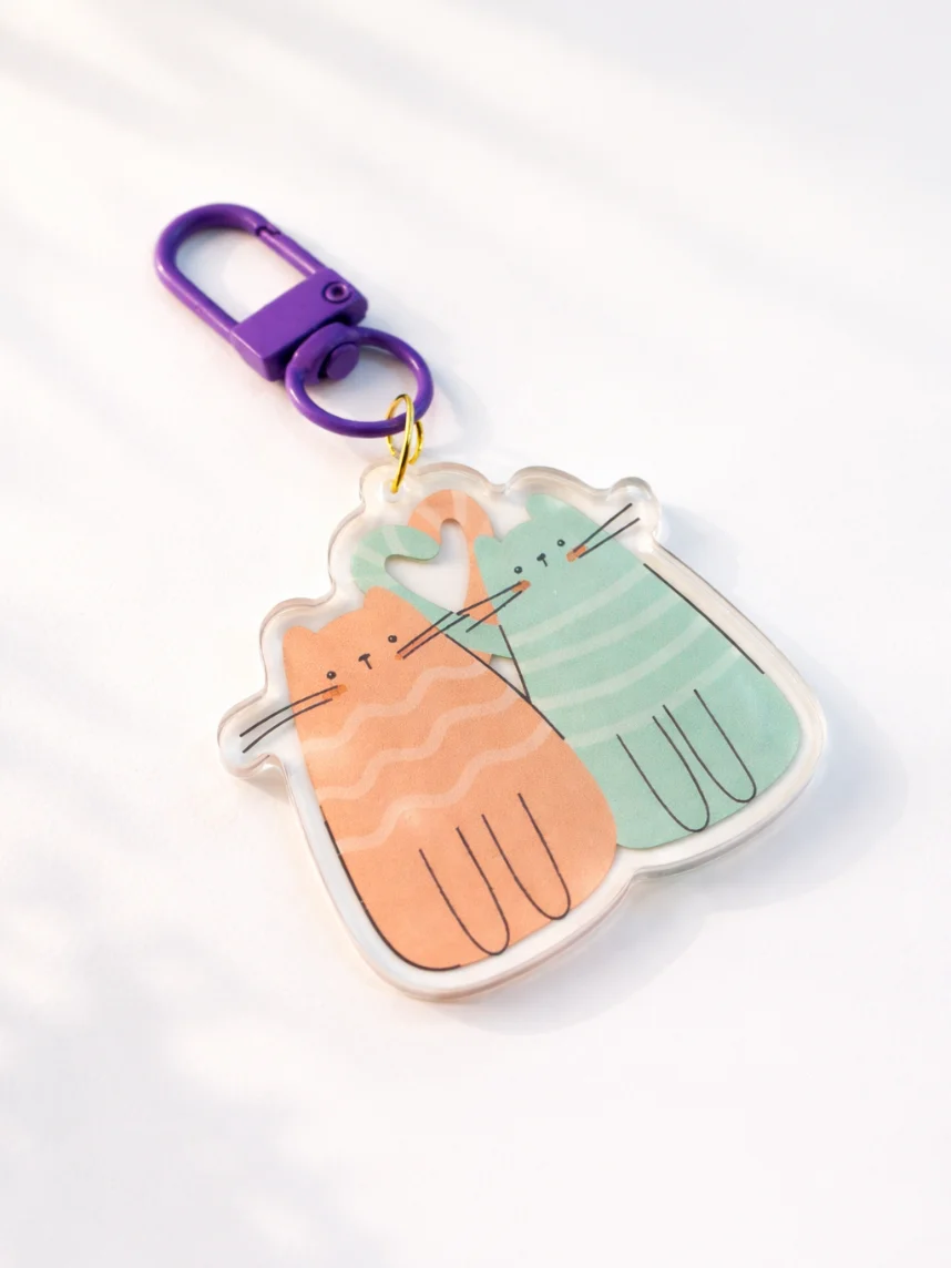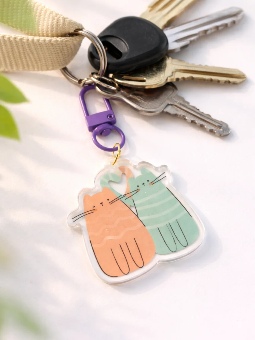 Милый брелок с двумя котиками — трогательный символ тепла, дружбы и близости. Такой аксессуар сразу вызывает улыбку и добавляет уюта любым ключам, сумке или рюкзаку.