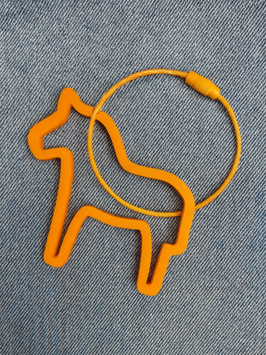 Брелок выполнен из пластика методом 3d печати, висит на стальном тросике с удобным винтовым замком.