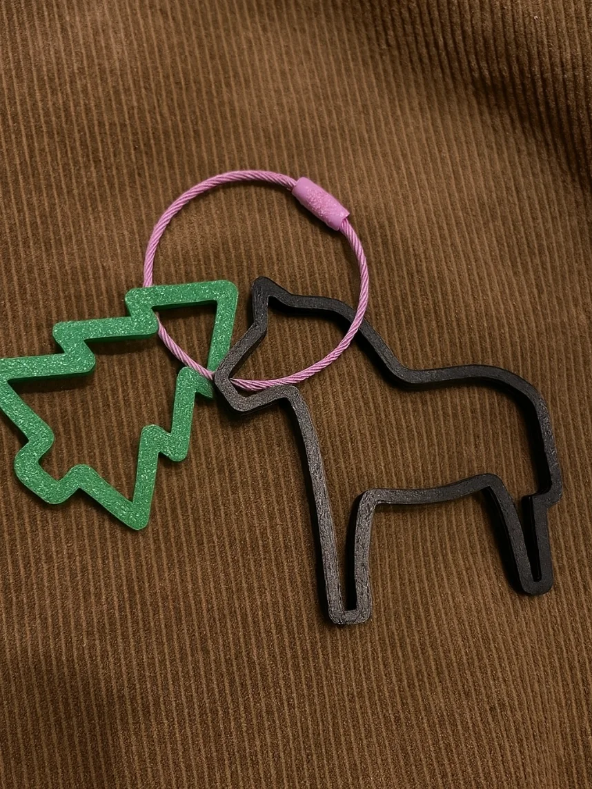 Стильный двойной брелок в виде минималистичных лошадки и ёлочки станет отличным дополнением к подарку на Новый год, день Рождения или другой праздник! Отлично смотрится на сумках, рюкзаках и ключах.