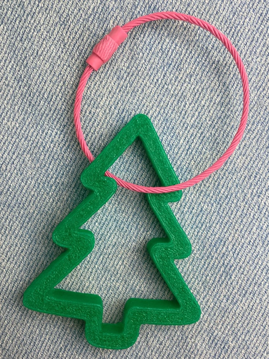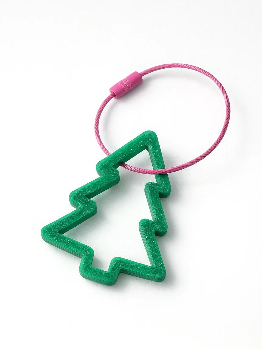 Брелок выполнен из пластика методом 3d печати, висит на стальном тросике с удобным винтовым замком.