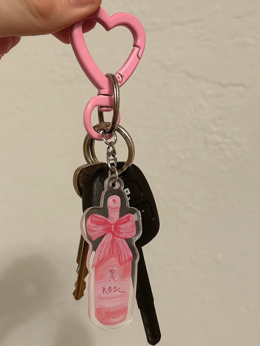 Стильный брелок в виде розового шампанского будет отличным дополнением к подарку на Новый год, день Рождения или другой праздник! Отлично смотрится на сумках, рюкзаках и ключах.