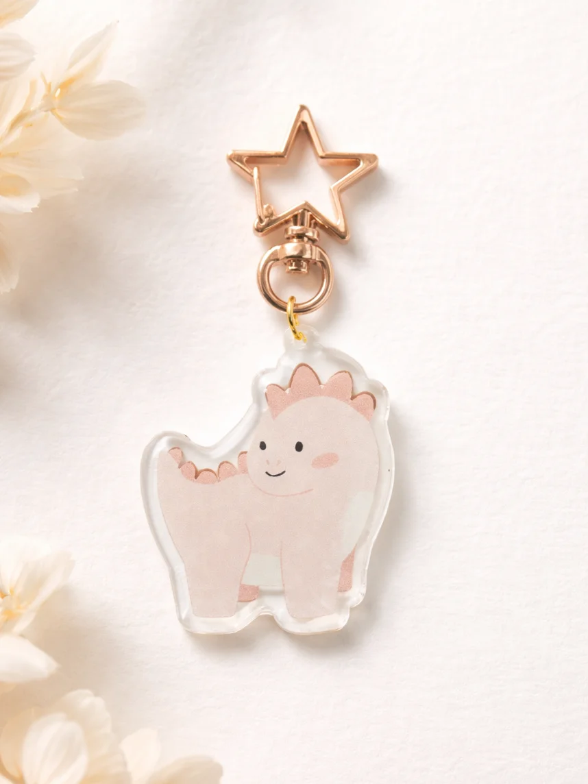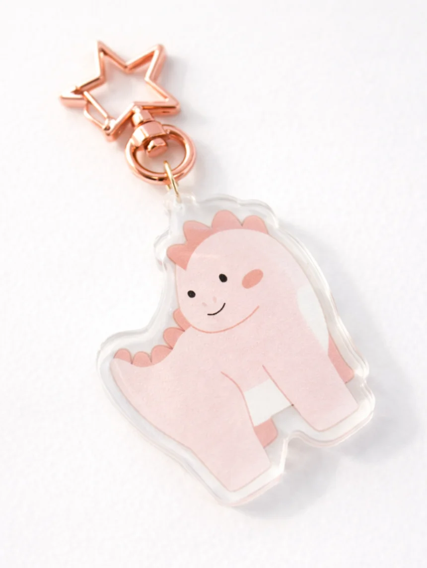 Очаровательный брелок в виде розового динозаврика — маленький акцент, который сразу поднимает настроение!
