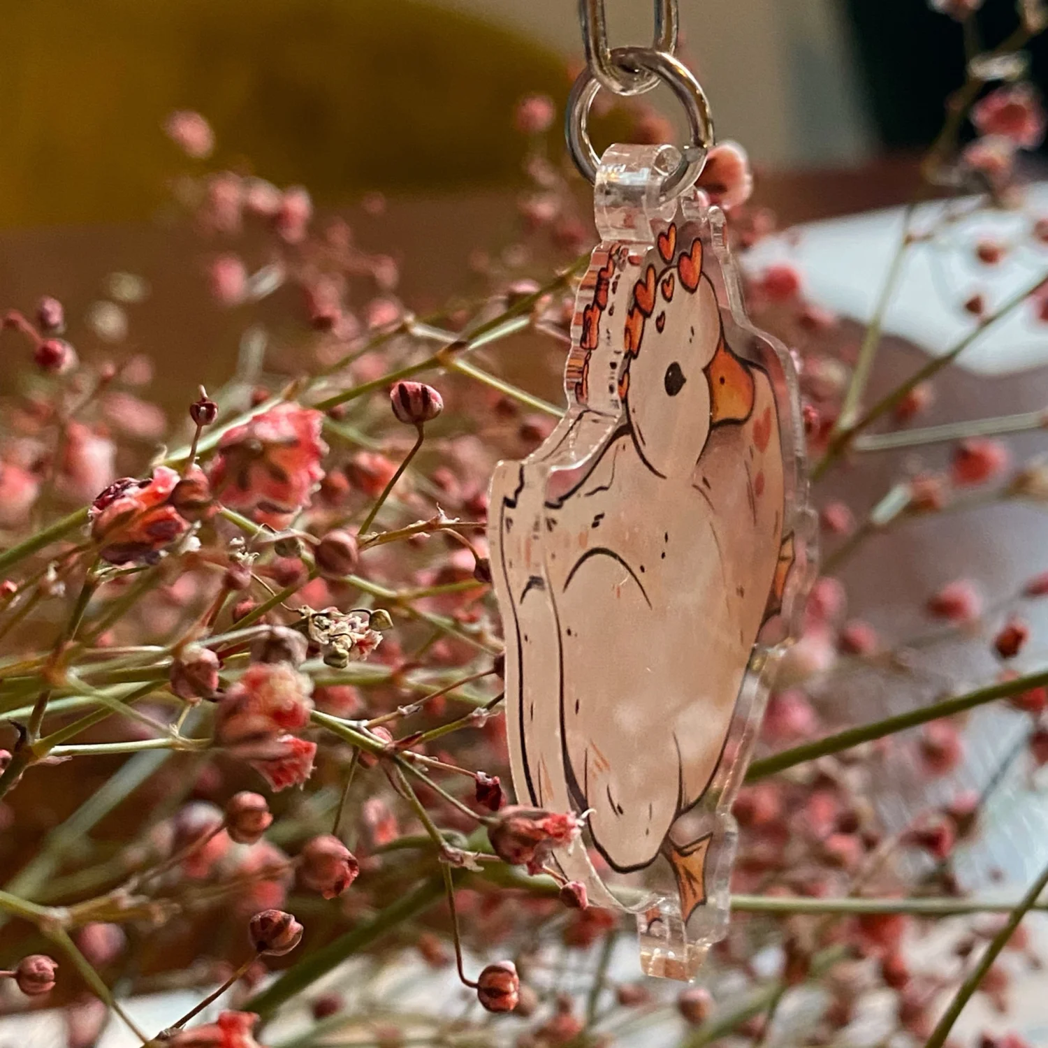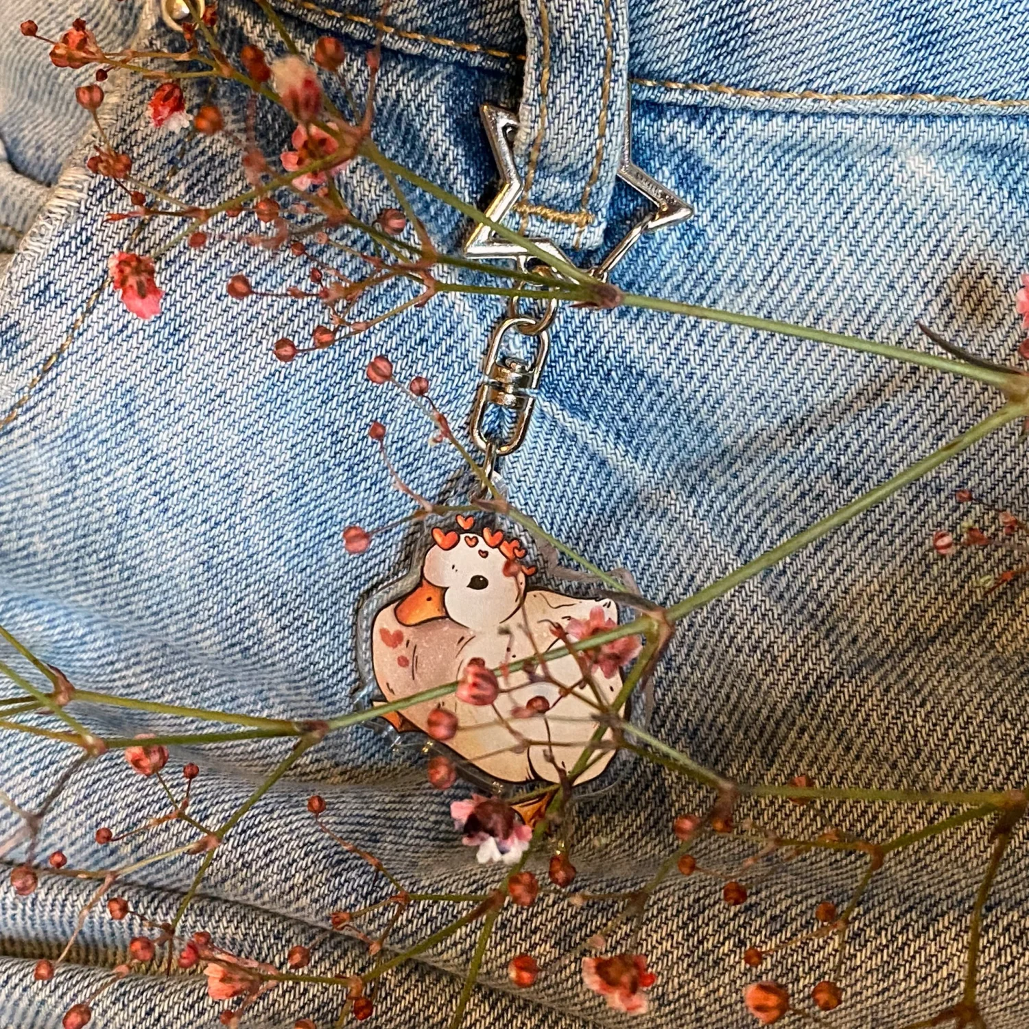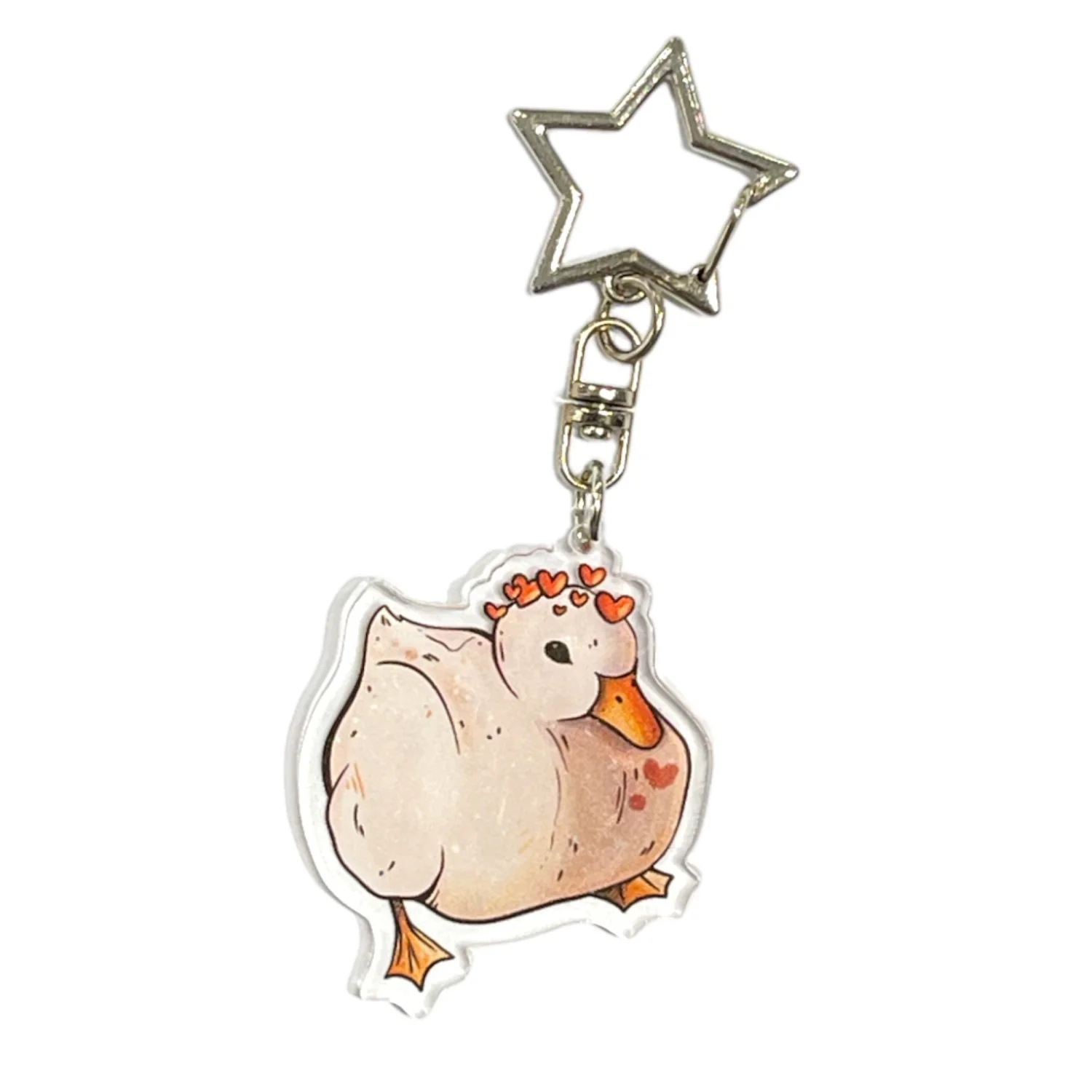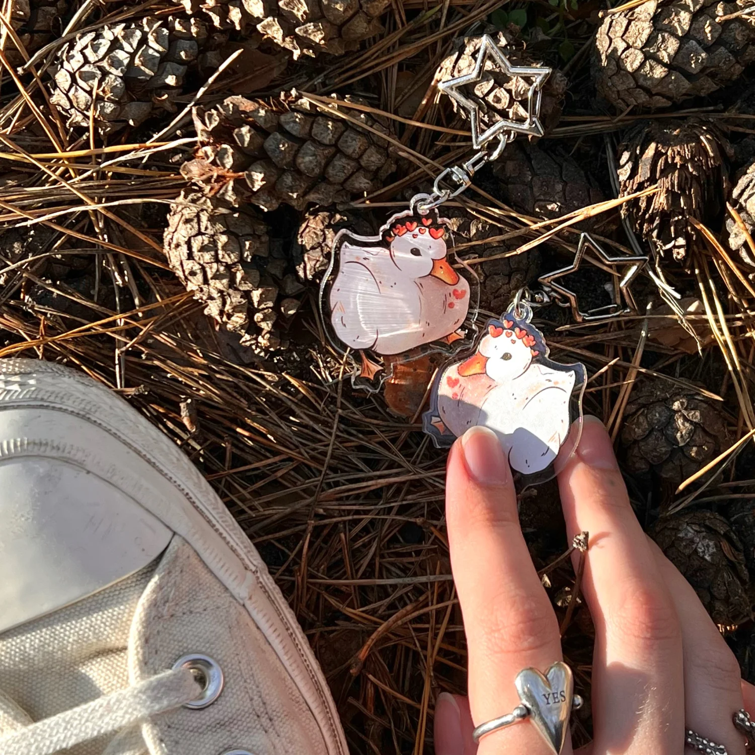 Двусторонний акриловый брелок с застёжкой-звёздочкой.