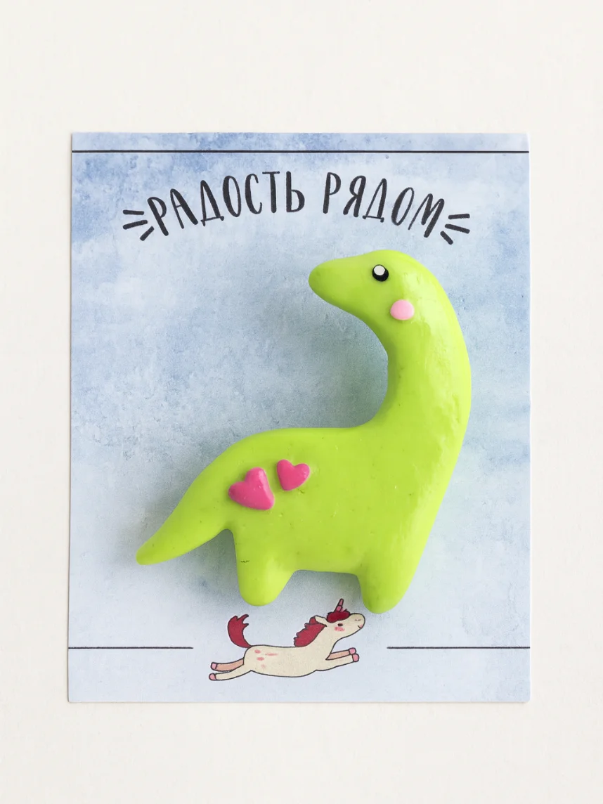 Брошь Радость Рядом «Динозаврик с сердечком», полимерная глина, зеленая