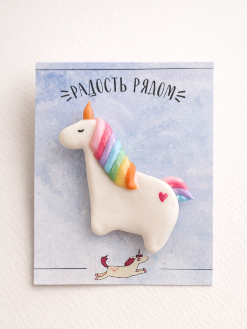 Брошь Радость Рядом «Единорог», полимерная глина, белая