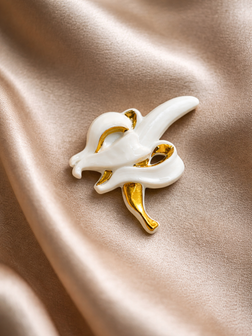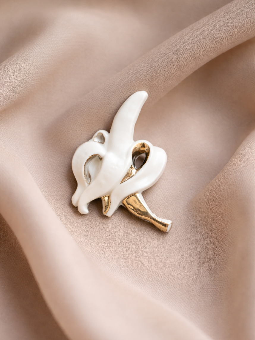 Фарфоровая брошь «Банан» в бело-золотистом цвете.
