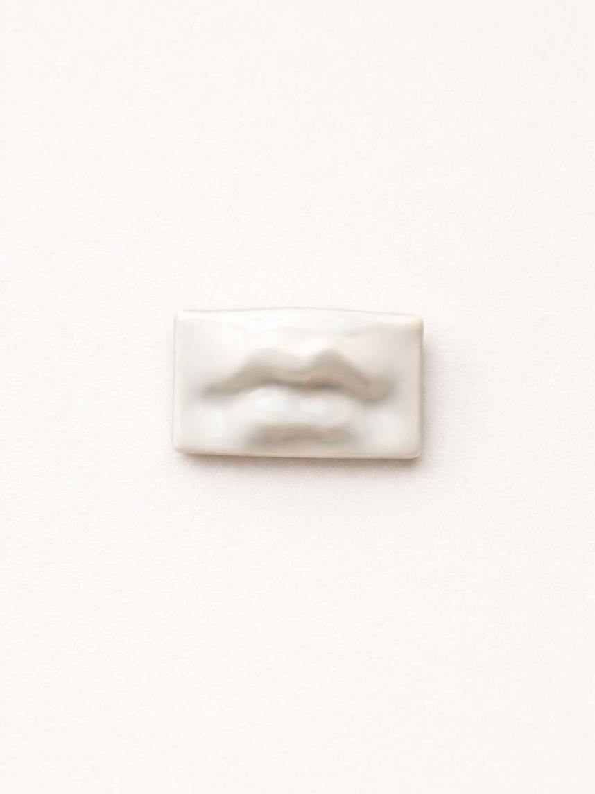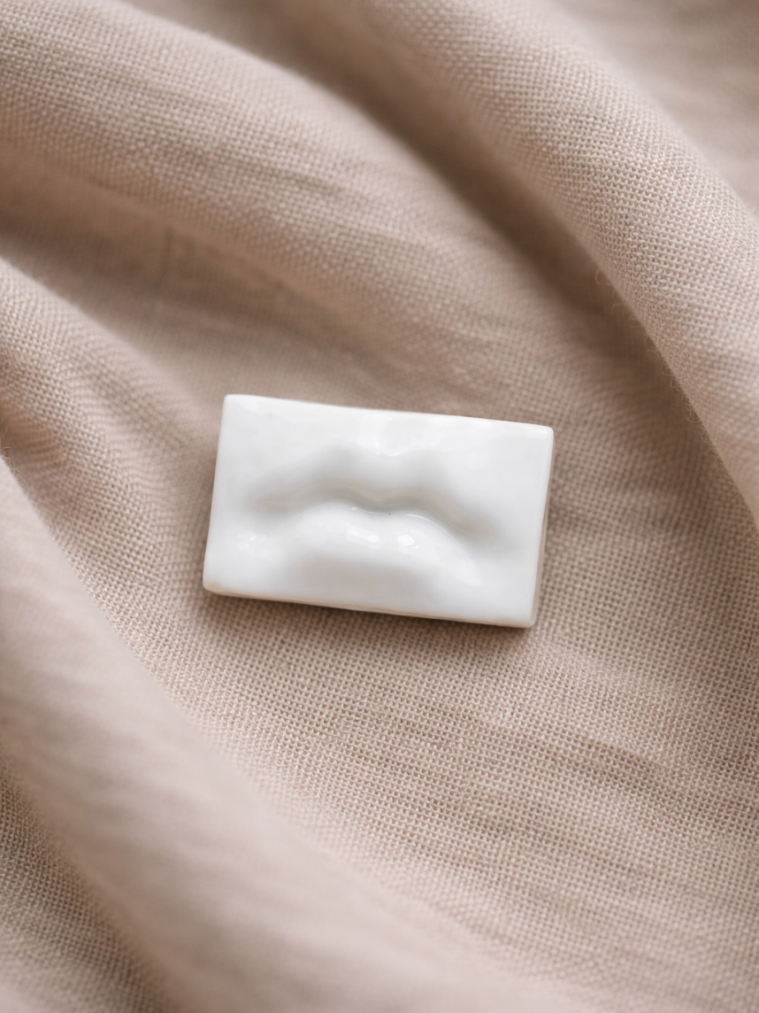 Фарфоровая брошь «Губы античные» в белом цвете.