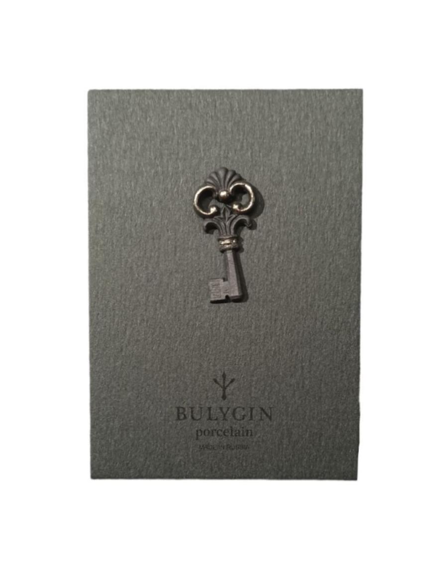 Брошь ручной работы Bulygin «Ключик», фарфор, чёрно-серебристая