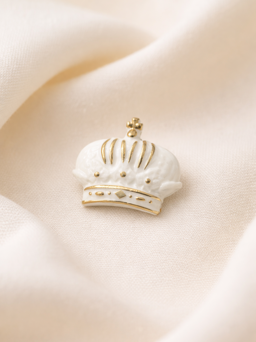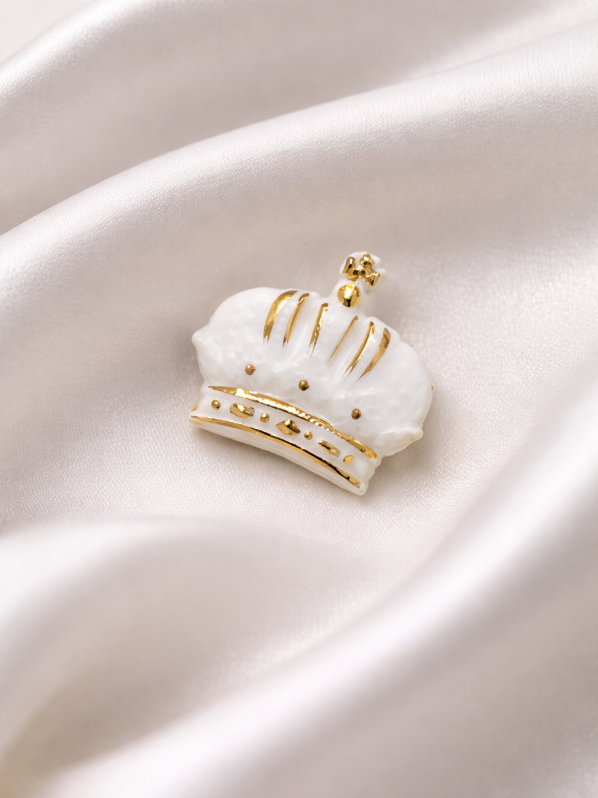 Фарфоровая брошь «Корона» в бело-золотистом цвете.