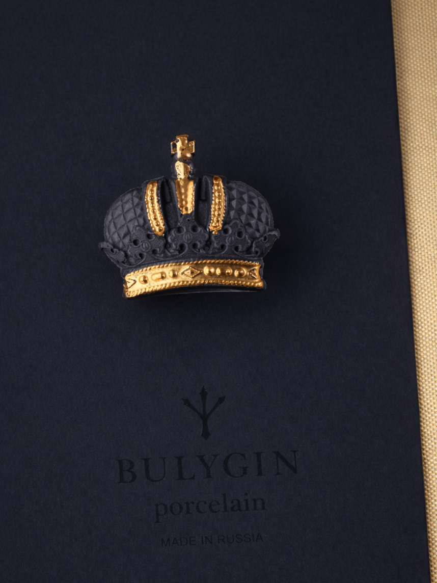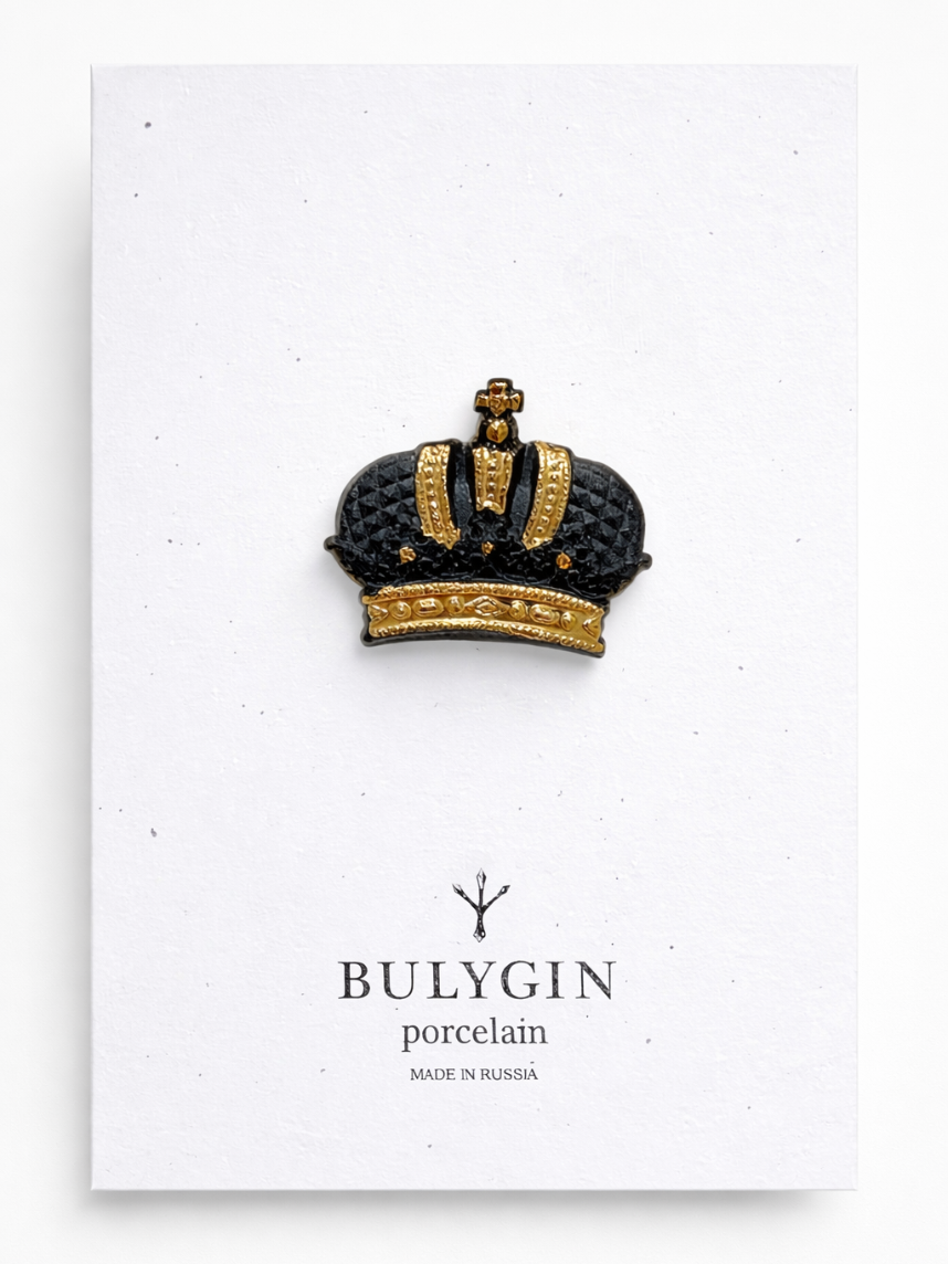 Брошь ручной работы Bulygin «Корона», фарфор, чёрно-золотистая