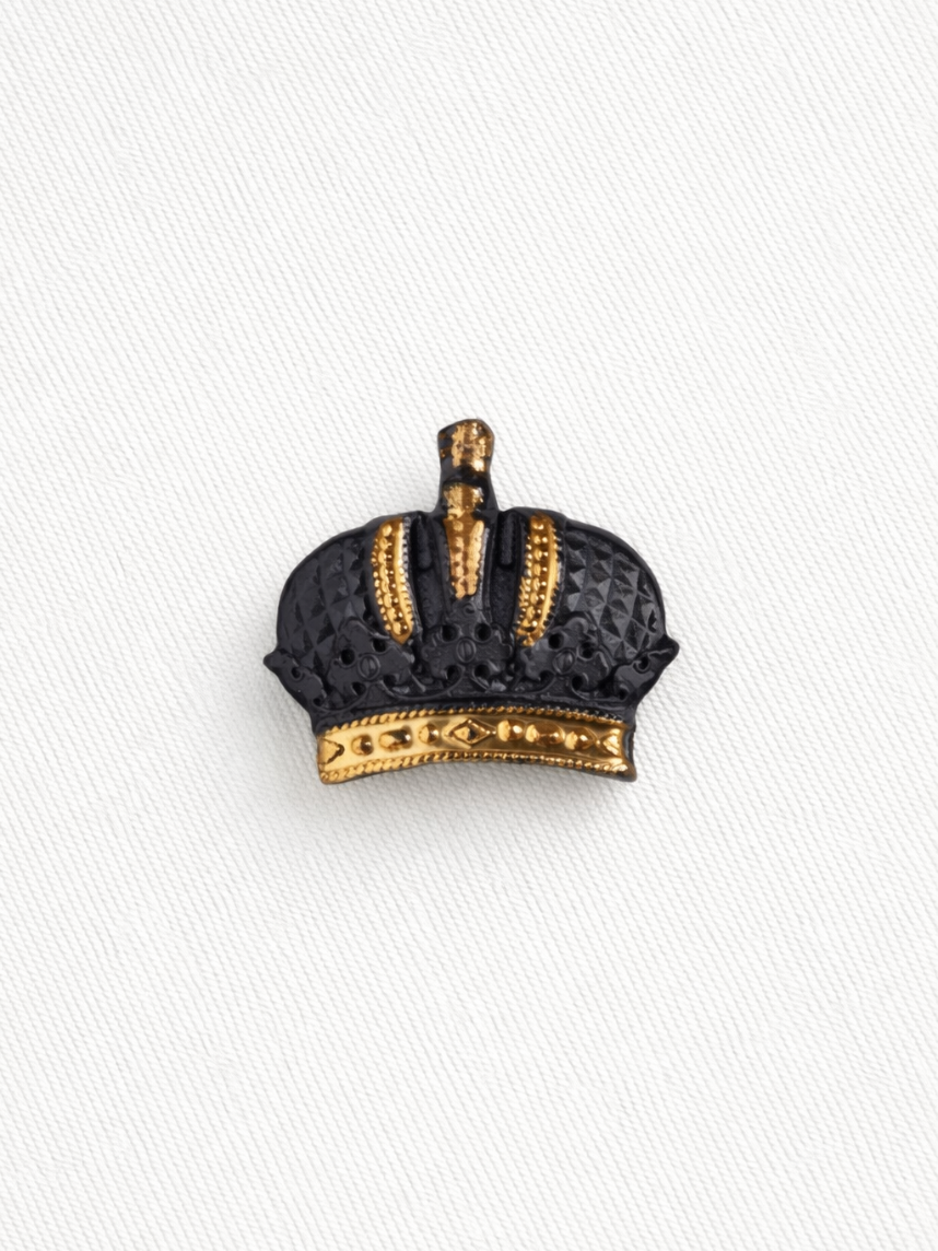Фарфоровая брошь «Корона» в чёрно-золотом цвете.