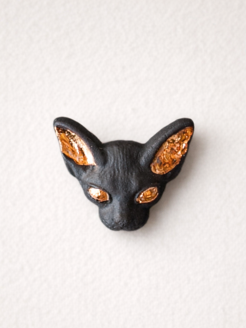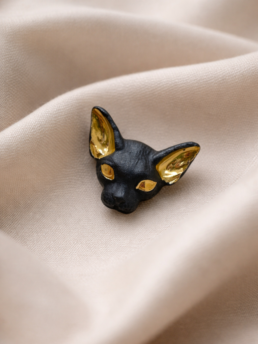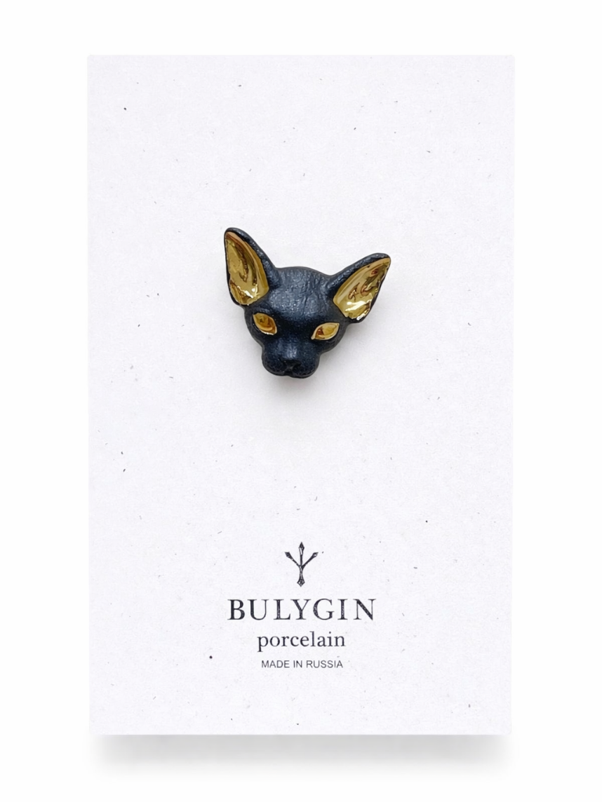 Брошь ручной работы Bulygin «Кошка», фарфор, чёрно-золотистая