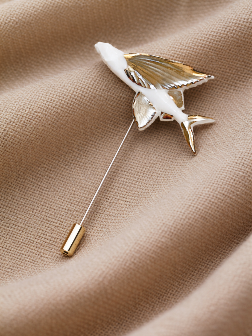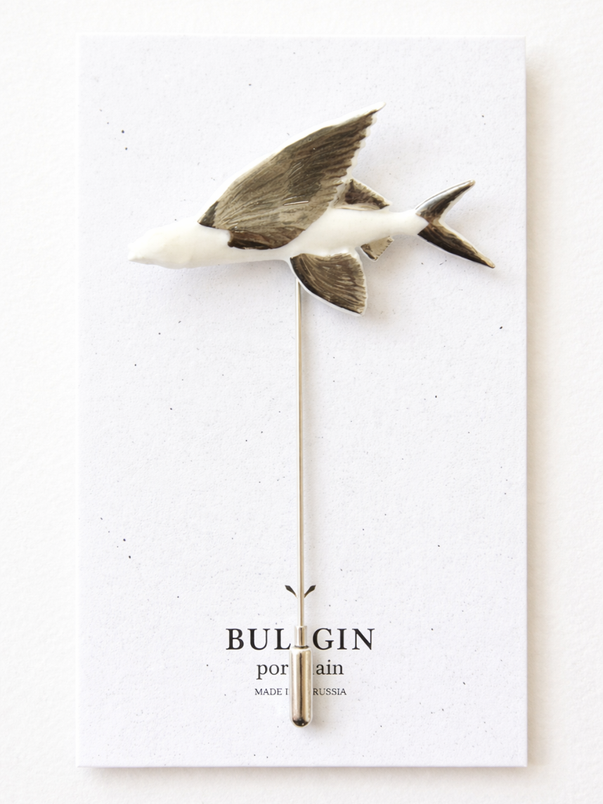 Брошь ручной работы Bulygin «Летучая рыба», бело-серебристая, фарфор