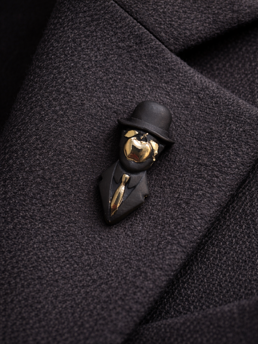 Брошь ручной работы Bulygin «Магритт», фарфор, чёрно-серебристая