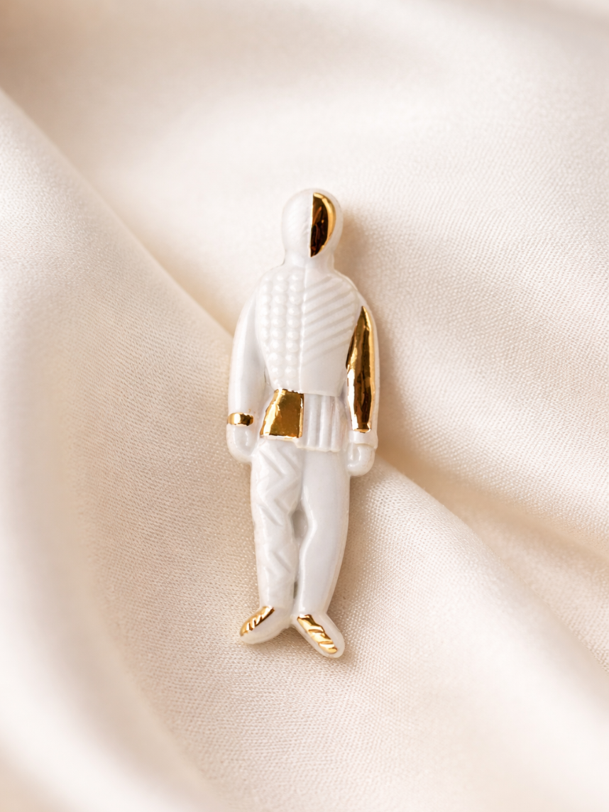 Фарфоровая брошь «Малевич» малая в бело-золотистом цвете.