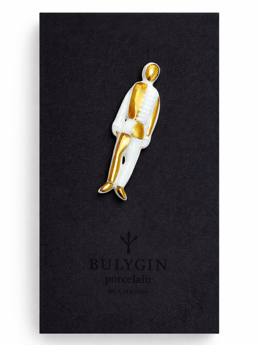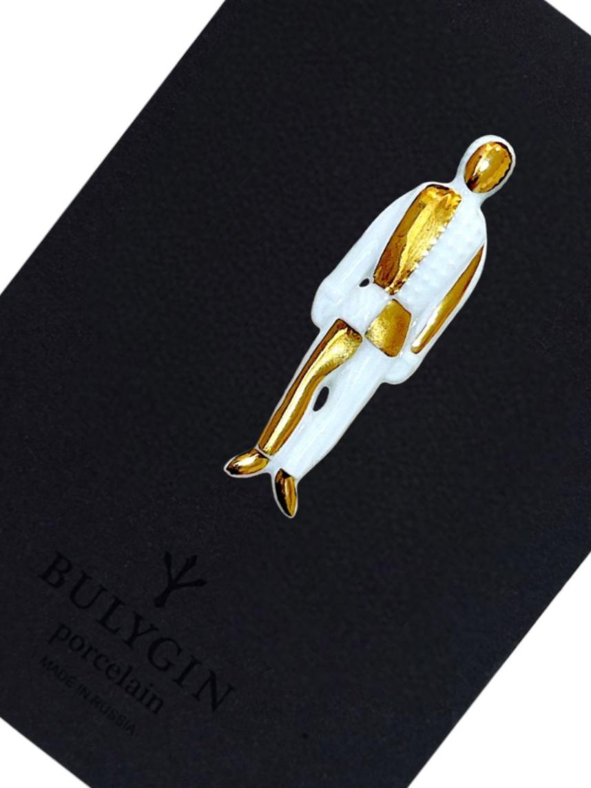 Брошь ручной работы Bulygin «Малевич», фарфор, бело-золотистая