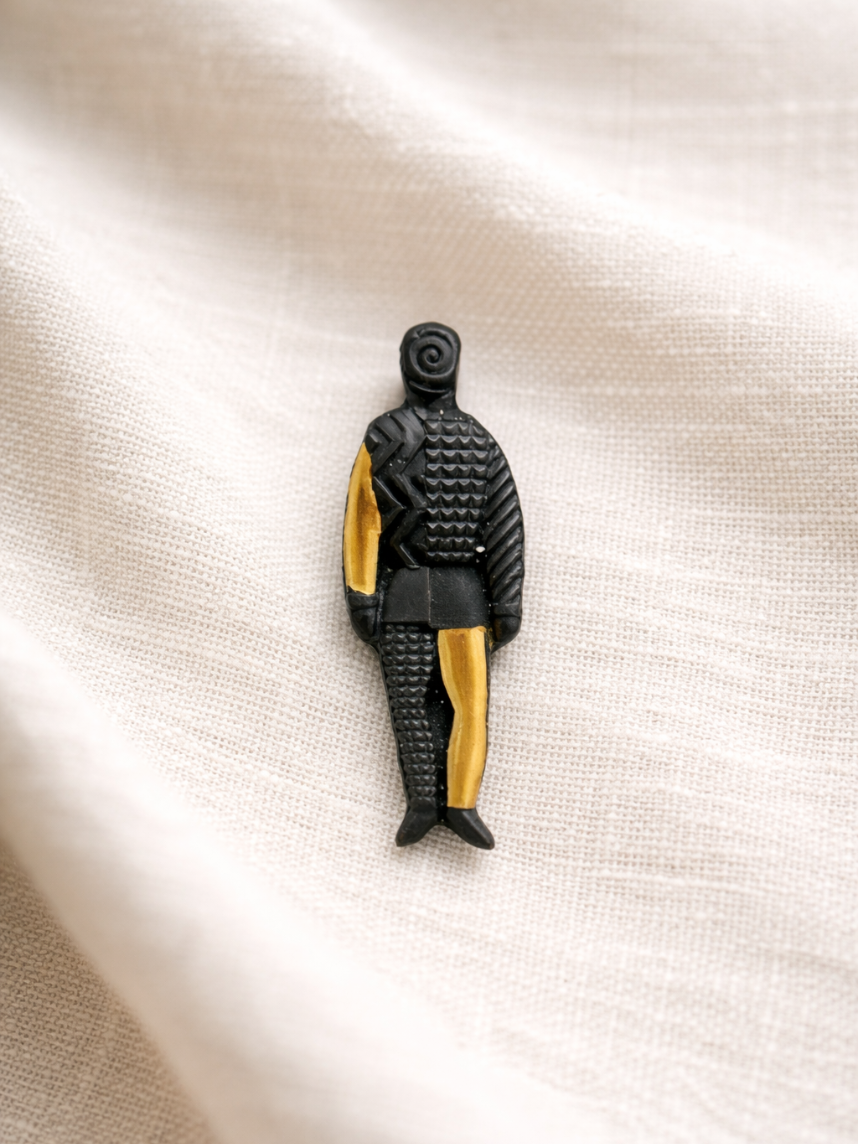 Фарфоровая брошь «Малевич» малая в чёрно-золотом цвете.