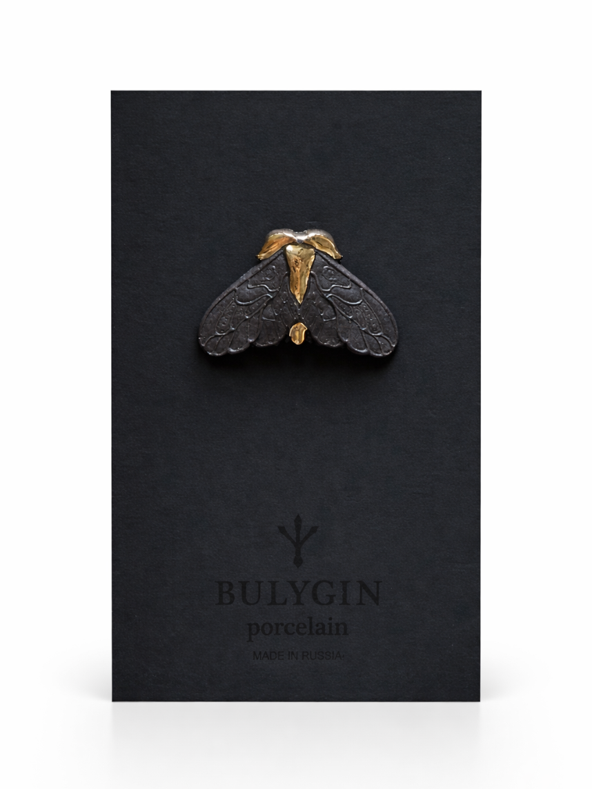 Брошь ручной работы Bulygin «Моль», фарфор, чёрно-золотистая