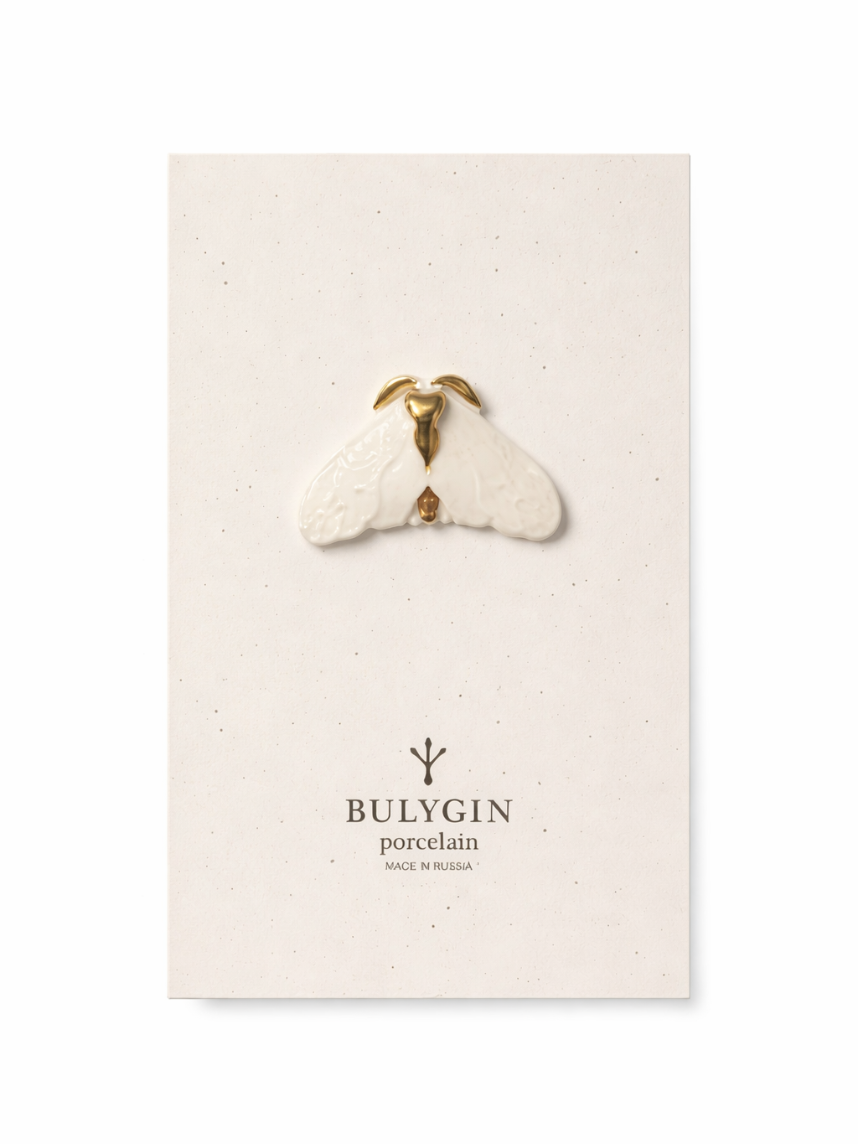 Брошь ручной работы Bulygin «Моль», фарфор, бело-золотистая