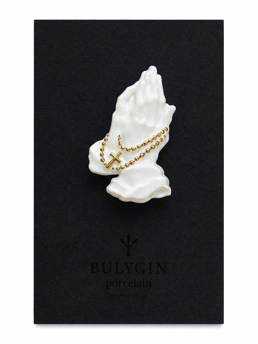 Брошь ручной работы Bulygin «Молитва», фарфор, бело-золотистая