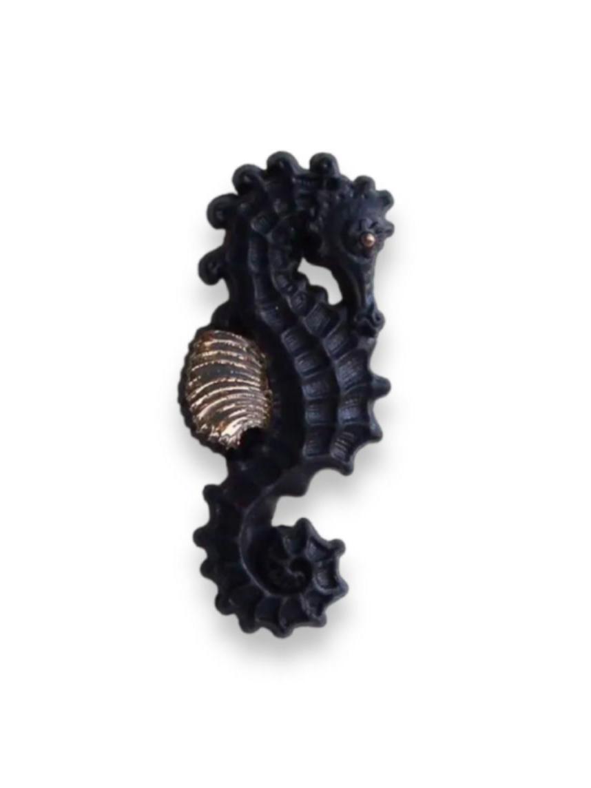 Фарфоровая брошь «Морской конёк» в чёрно-серебряном цвете.