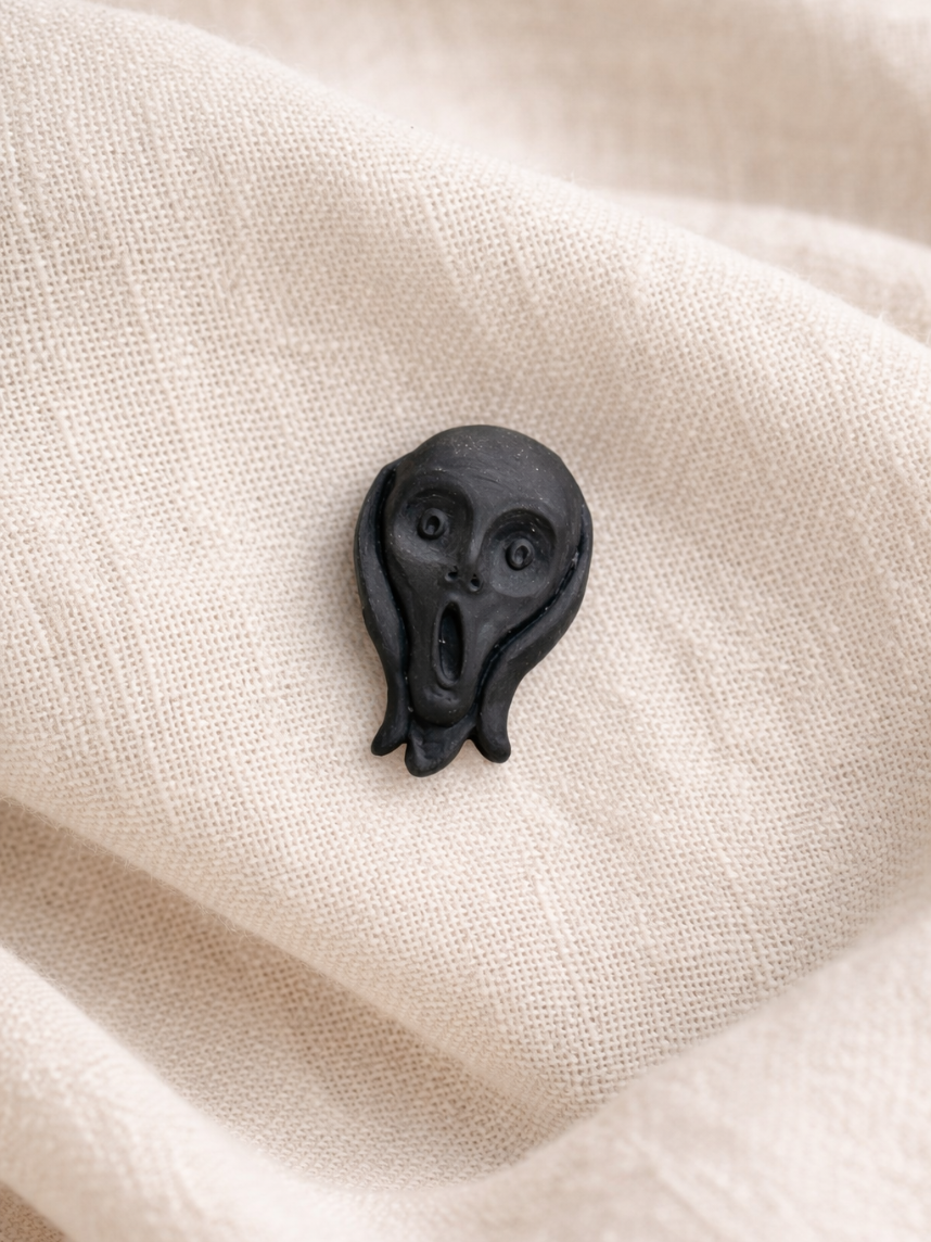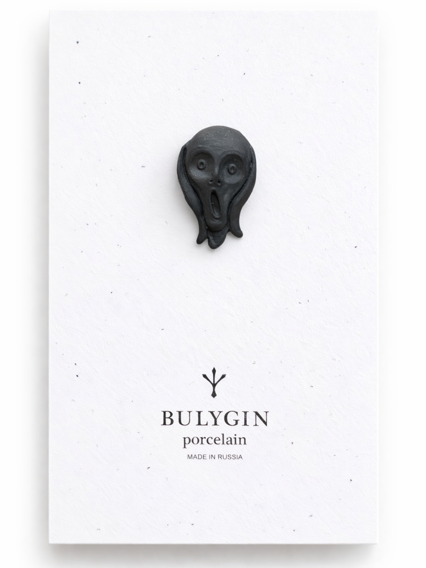 Брошь ручной работы Bulygin «Мунк», чёрная, фарфор