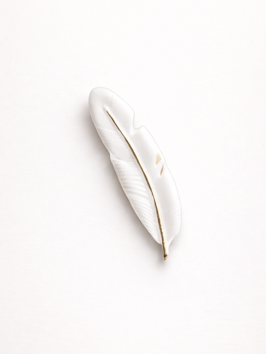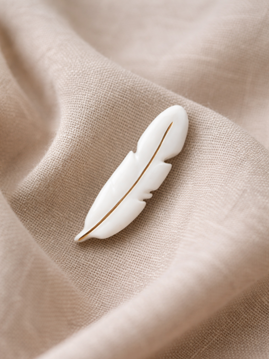Брошь ручной работы Bulygin «Перо», фарфор, бело-золотистая