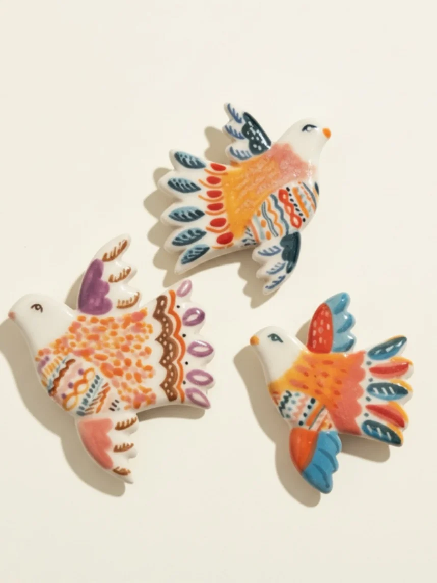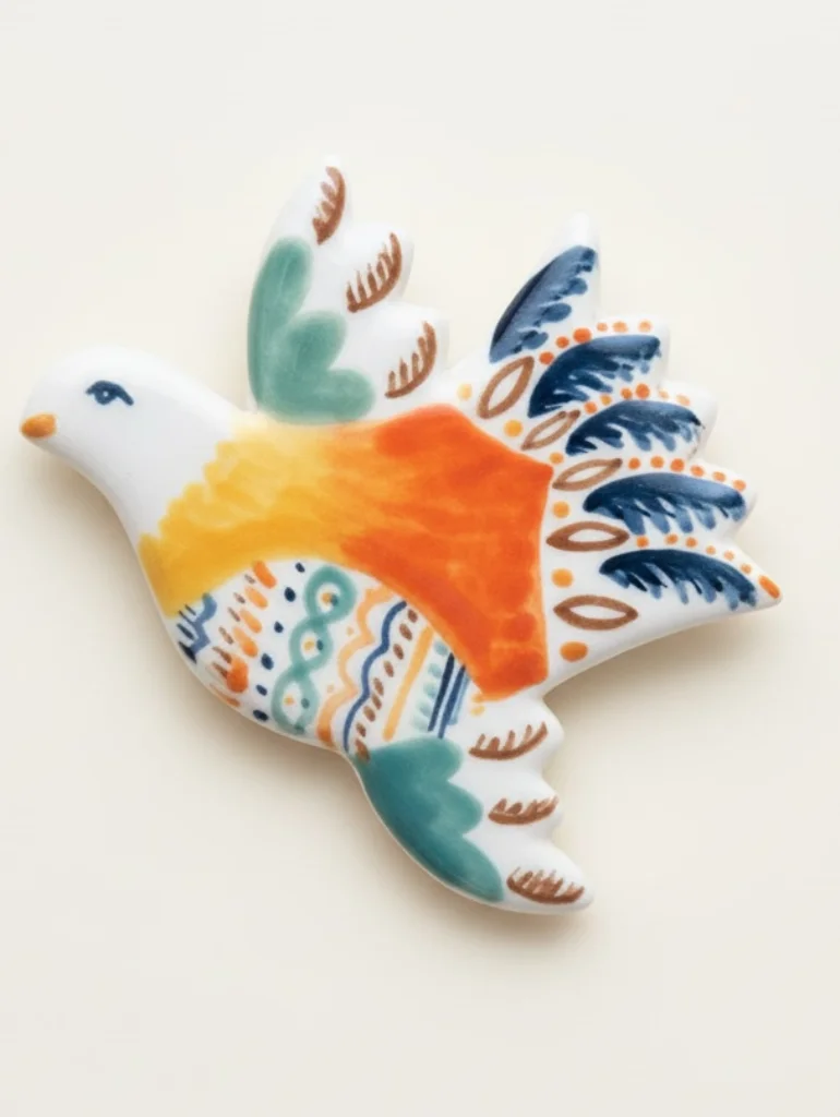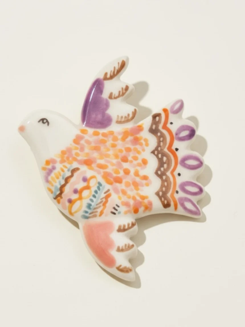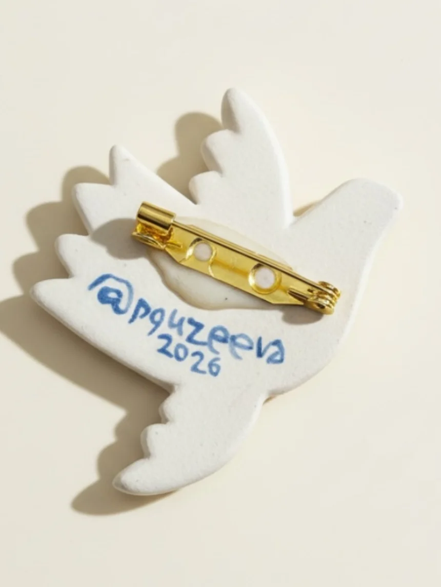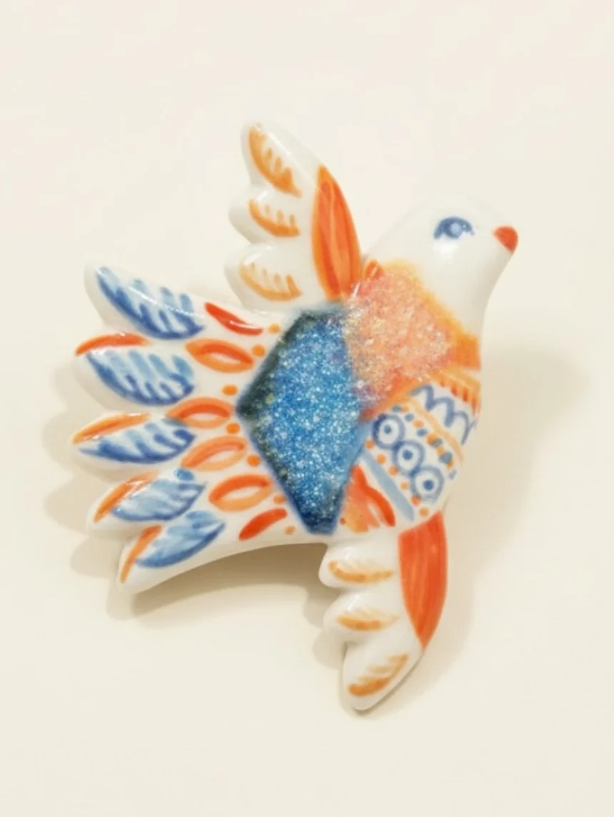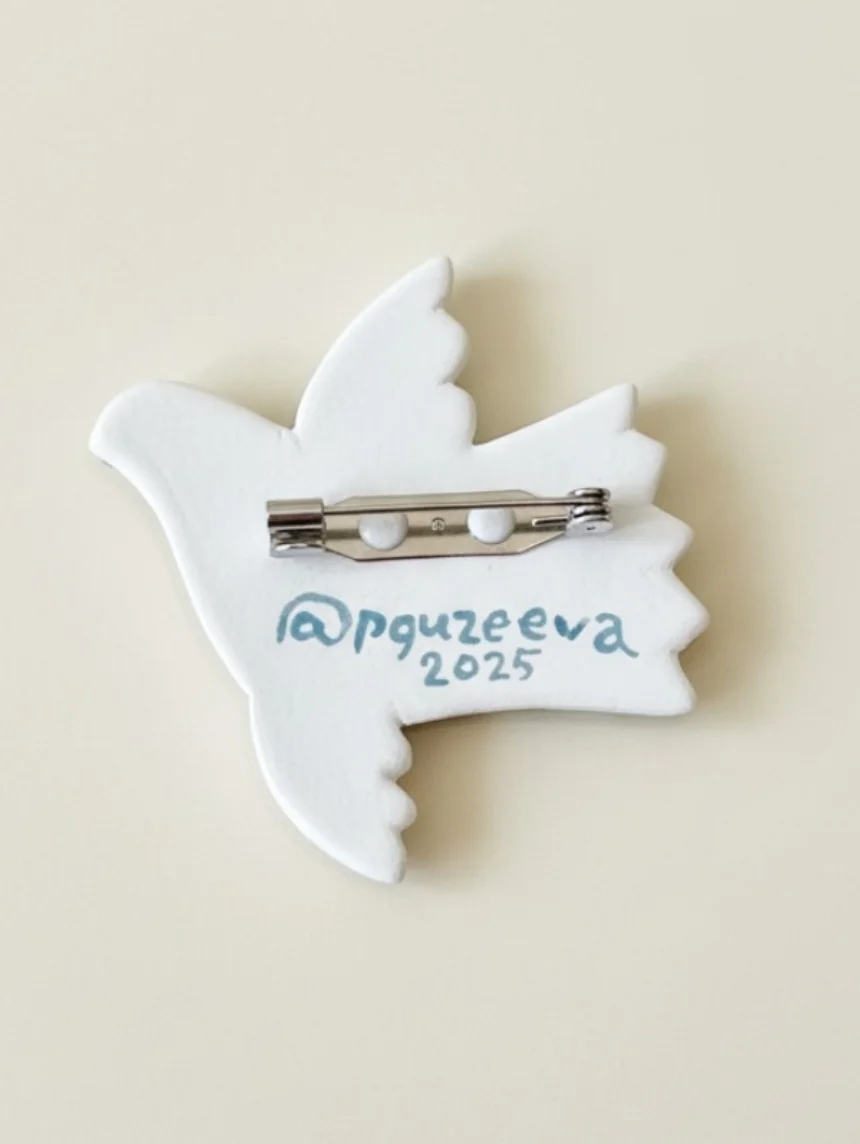 Элегантная брошь ручной работы «Птичка» от Полины Гузеевой, выполненная из фарфора.