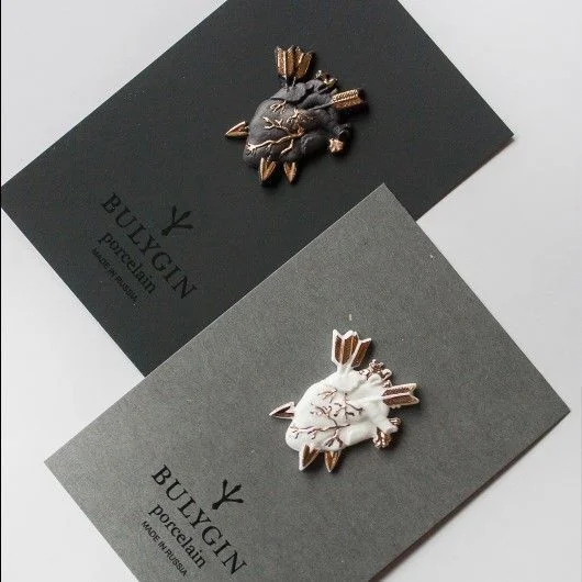 BULYGIN porcelain - небольшая семейная мастерская, создающая вручную броши из белого и черного фарфора. Фарфор в руках мастеров превращается в настоящие произведения искусства! Такие броши станут великолепным подарком обладательнице тонкого вкуса.