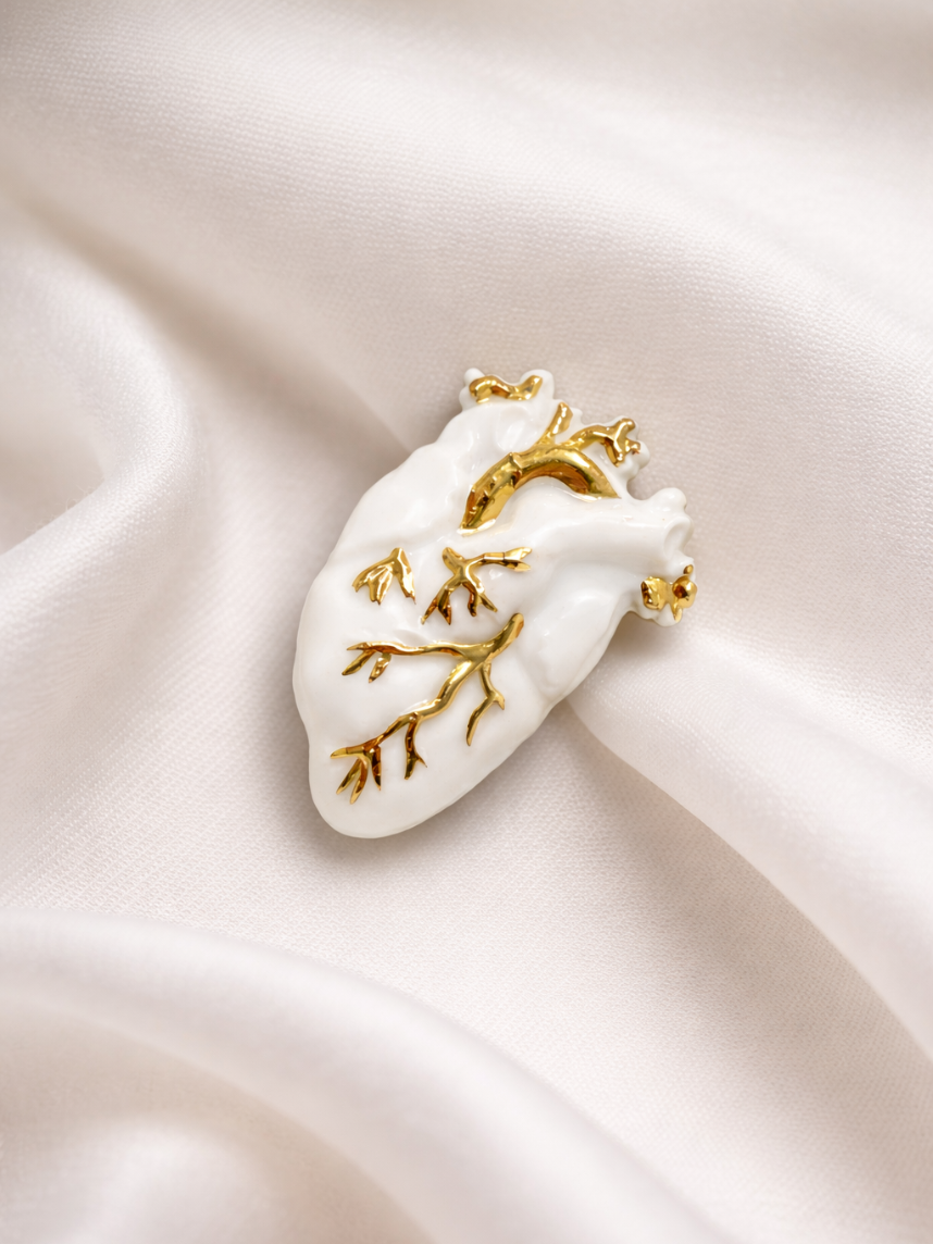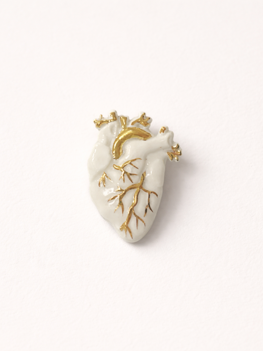 Брошь ручной работы Bulygin «Сердце», фарфор, бело-золотистая
