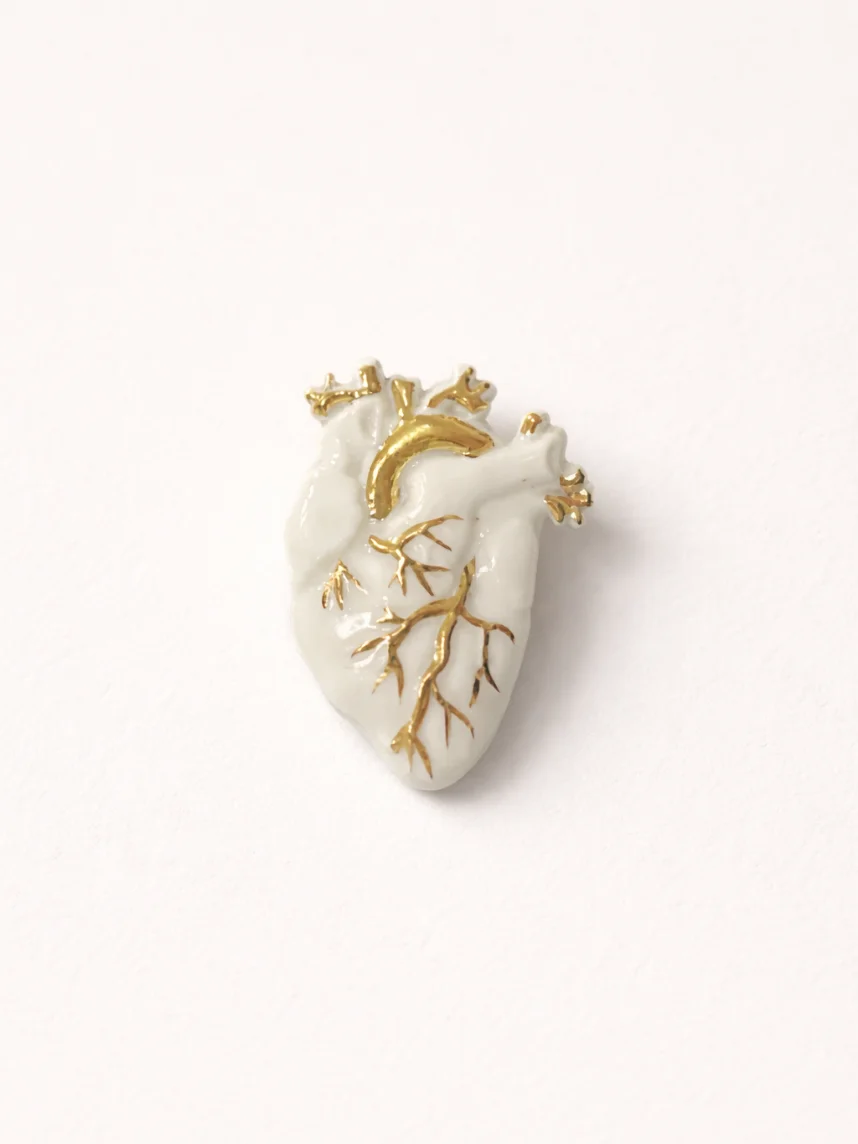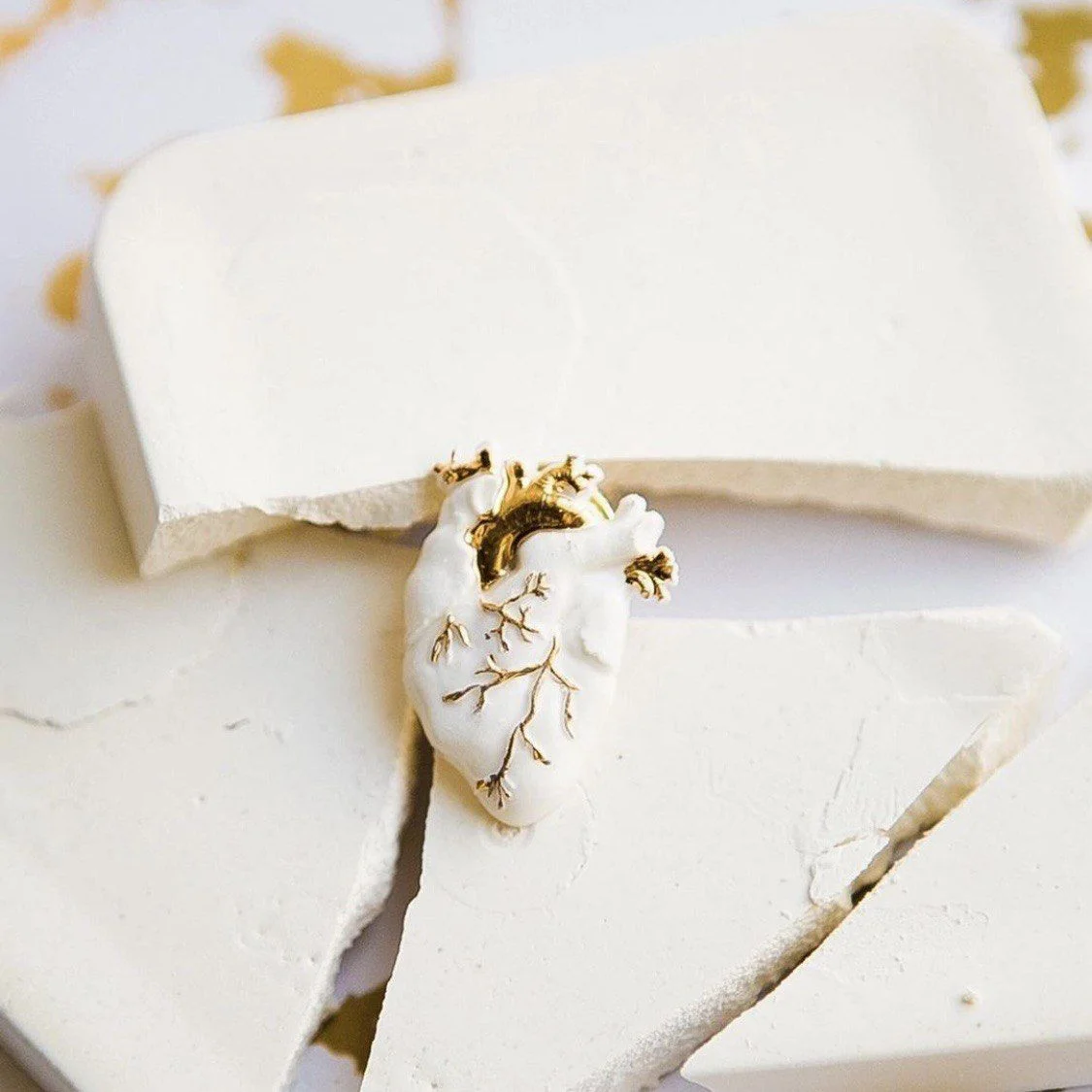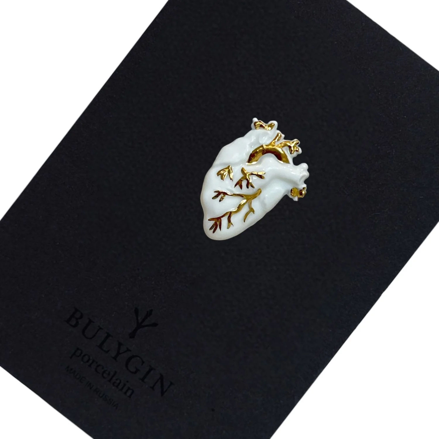 Фарфоровая брошь «Сердце» в бело-золотистом цвете.