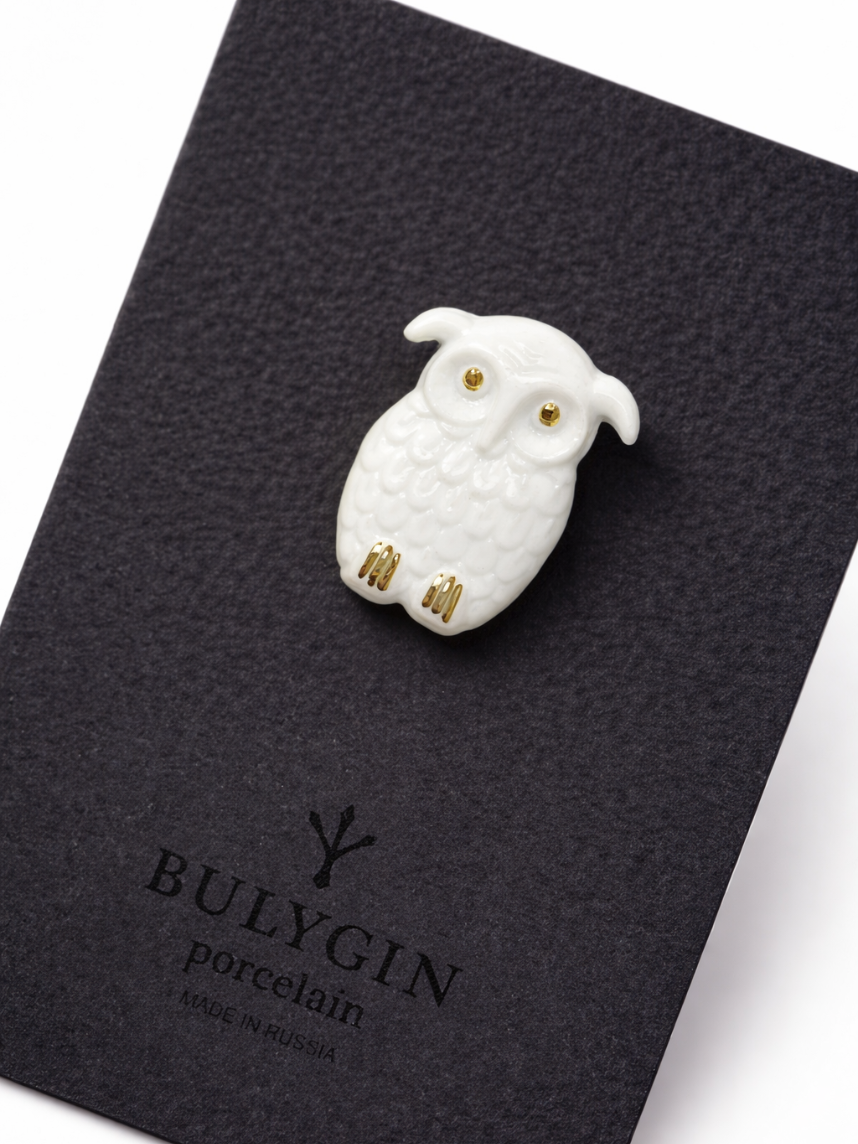 Брошь ручной работы Bulygin «Сова», фарфор, бело-золотистая