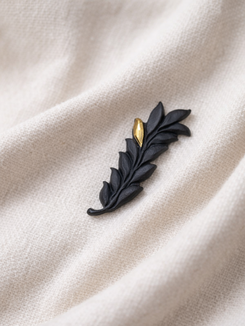 Фарфоровая брошь «Веточка» в чёрно-золотом цвете.