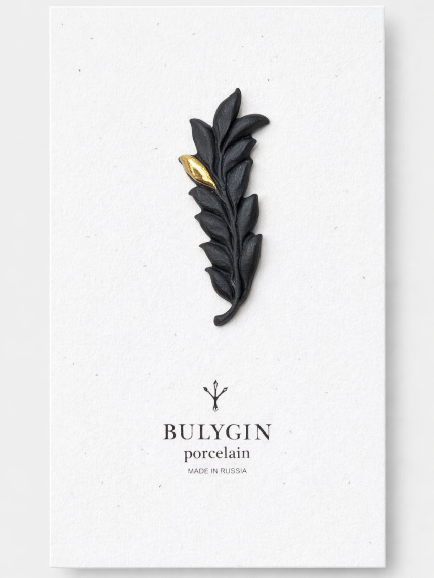 Брошь ручной работы Bulygin «Веточка», фарфор, чёрно-золотистая