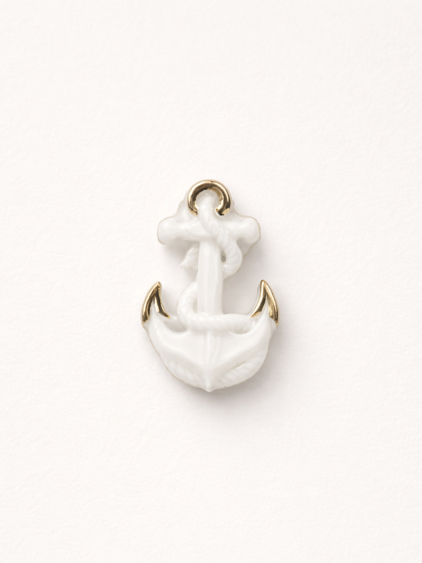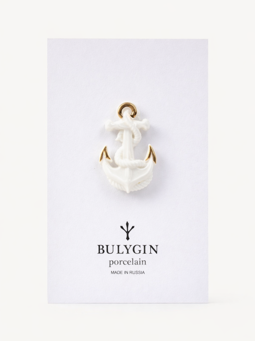 Брошь ручной работы Bulygin «Якорь», фарфор, бело-золотистая