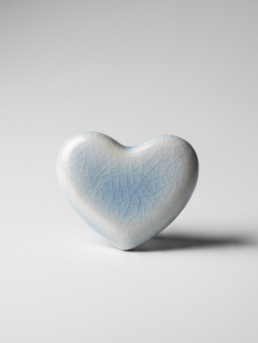 Яркая керамическая брошь в виде сердечка лазурного цвета с трещинками. Станет отличным подарком и не оставят без внимания любительницу украшений!