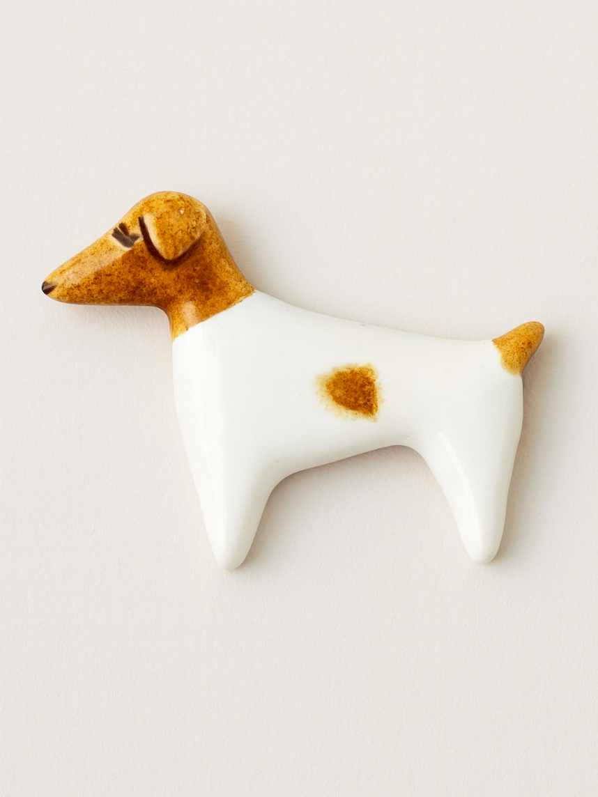 Эту необычную брошь можно приобрести с доставкой по всей стране или забрать самовывозом из нашего магазина в центре Санкт-Петербурга. Керамическая брошь в виде собачки станет стильным дополнением к вашему образу и прекрасным подарком для девушки, подруги, мамы или коллеги на День Рождения, 8 марта или Новый год.