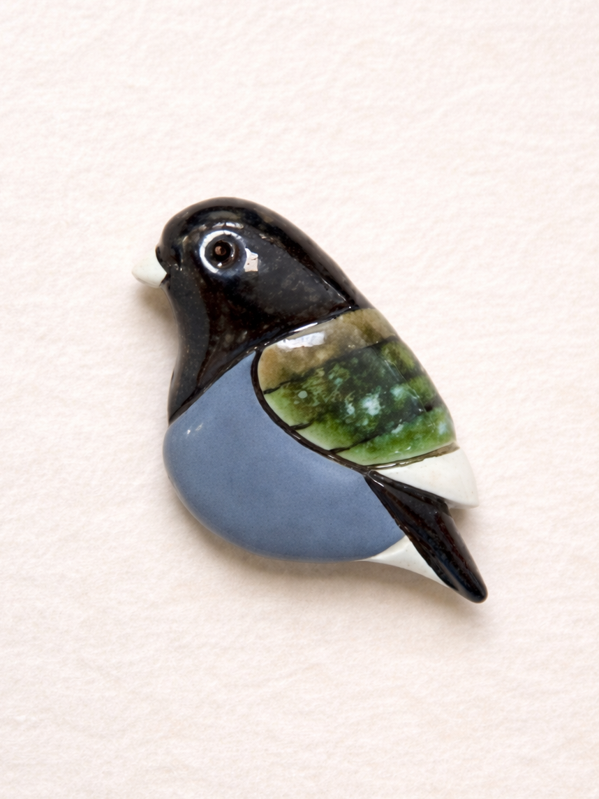 Брошь керамическая ручной работы «Птичка», черно-синяя