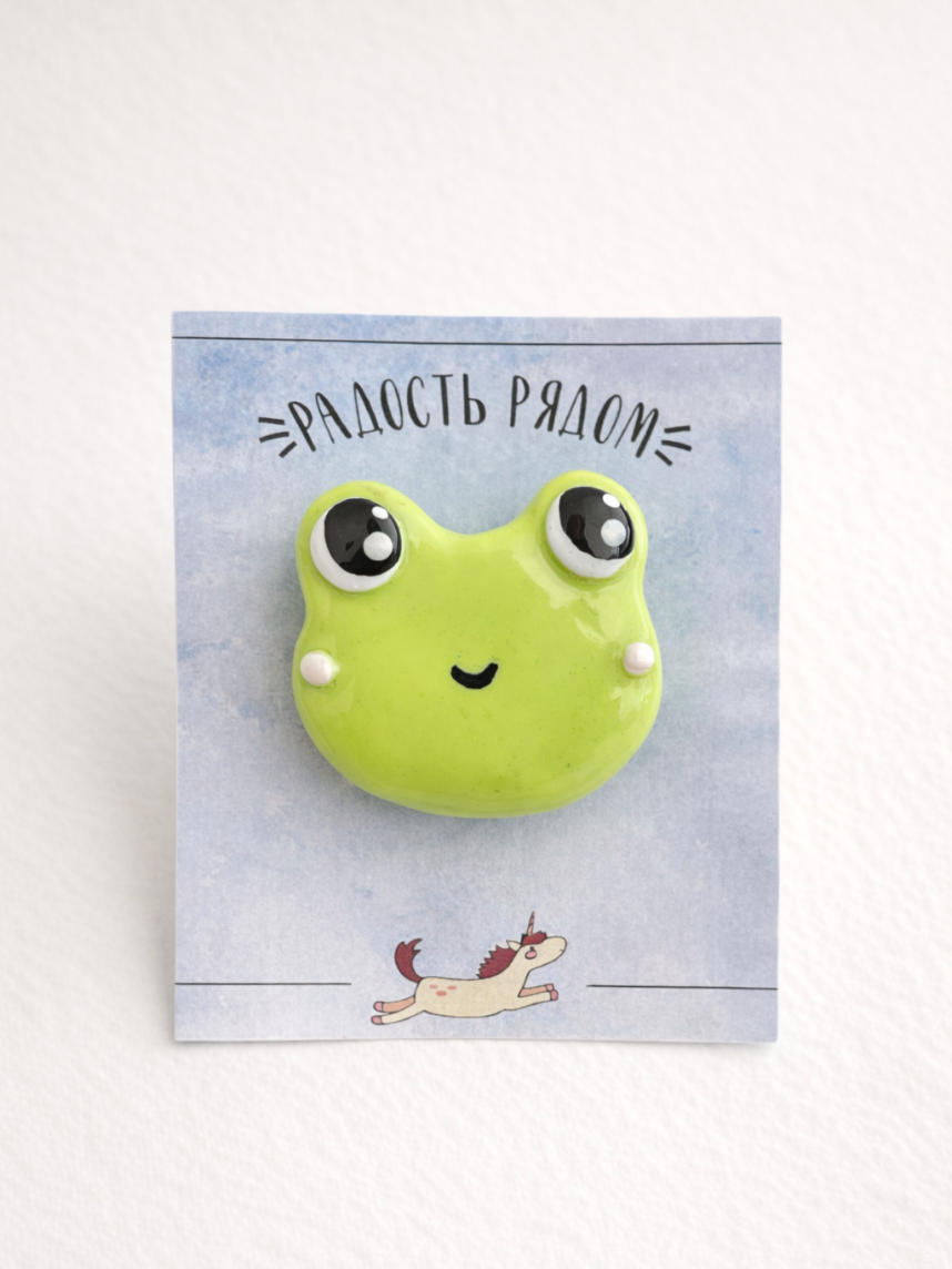 Брошь Радость Рядом «Лягушонок», полимерная глина, зеленая