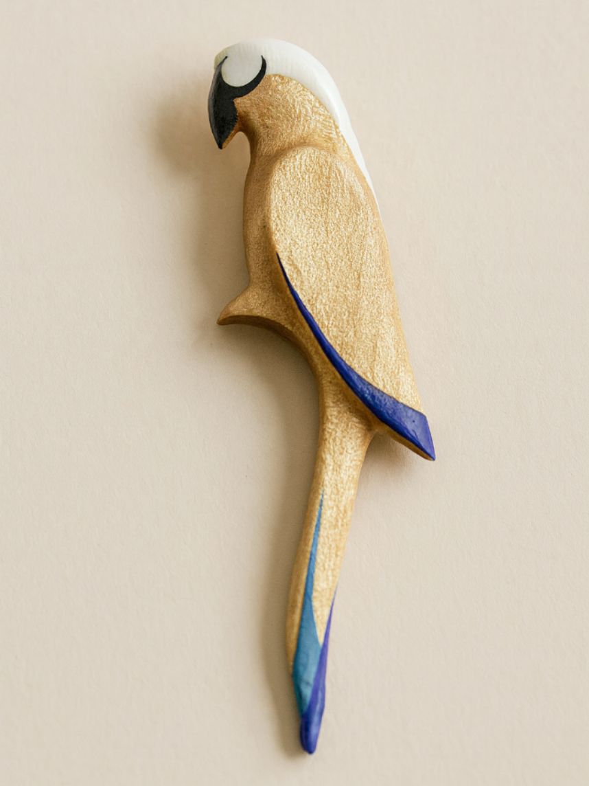 Брошь «Попугай Ара» от бренда Free in tree - деревянная ручной работы с росписью. Это идеальный аксессуар для любителей живой природы.