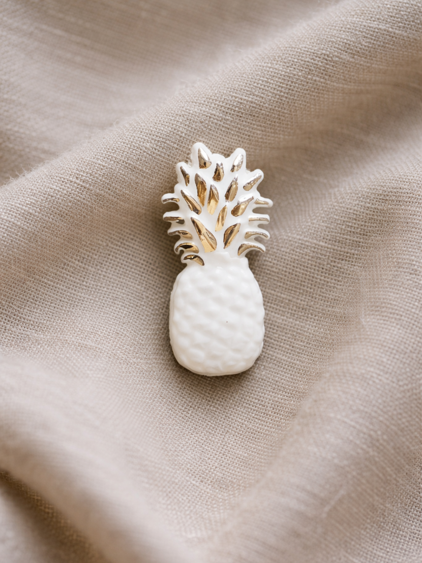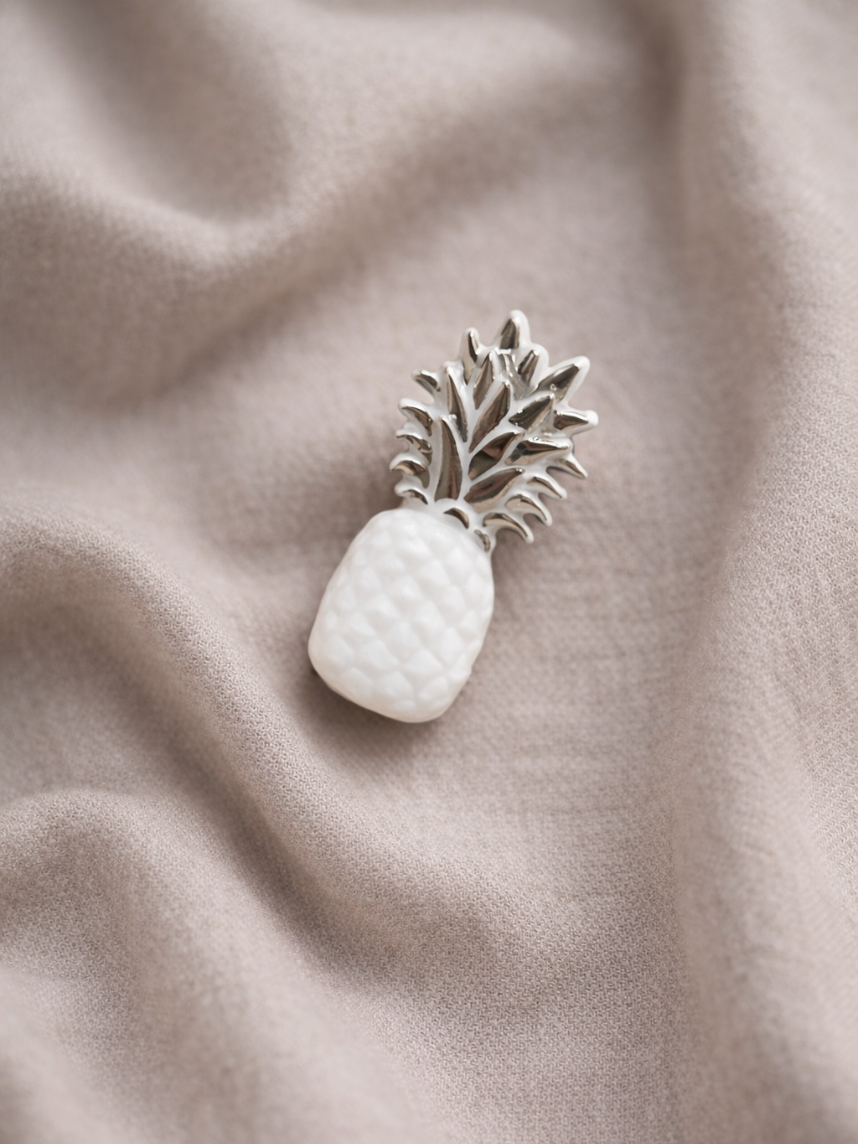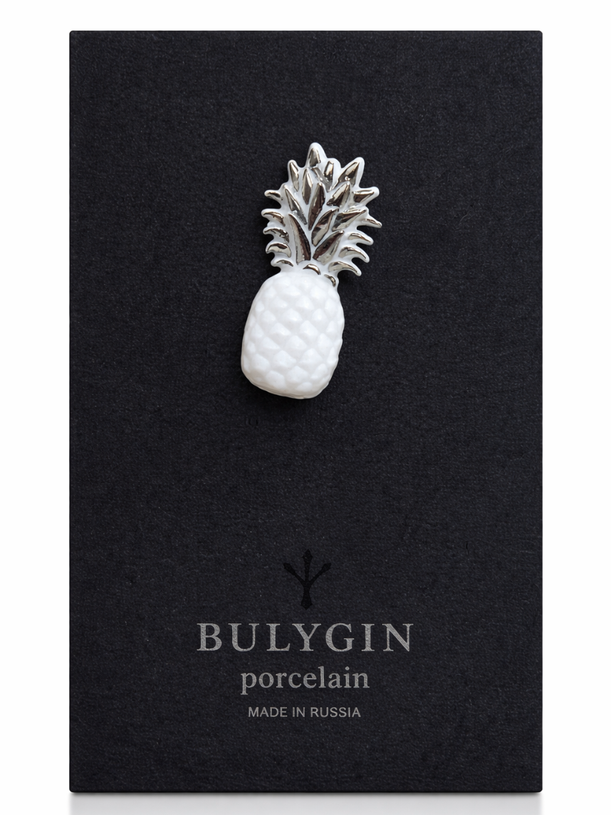 Фарфоровая брошь «Ананас» бело-серебристого цвета.