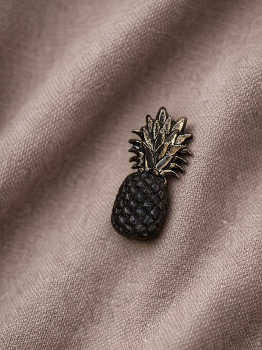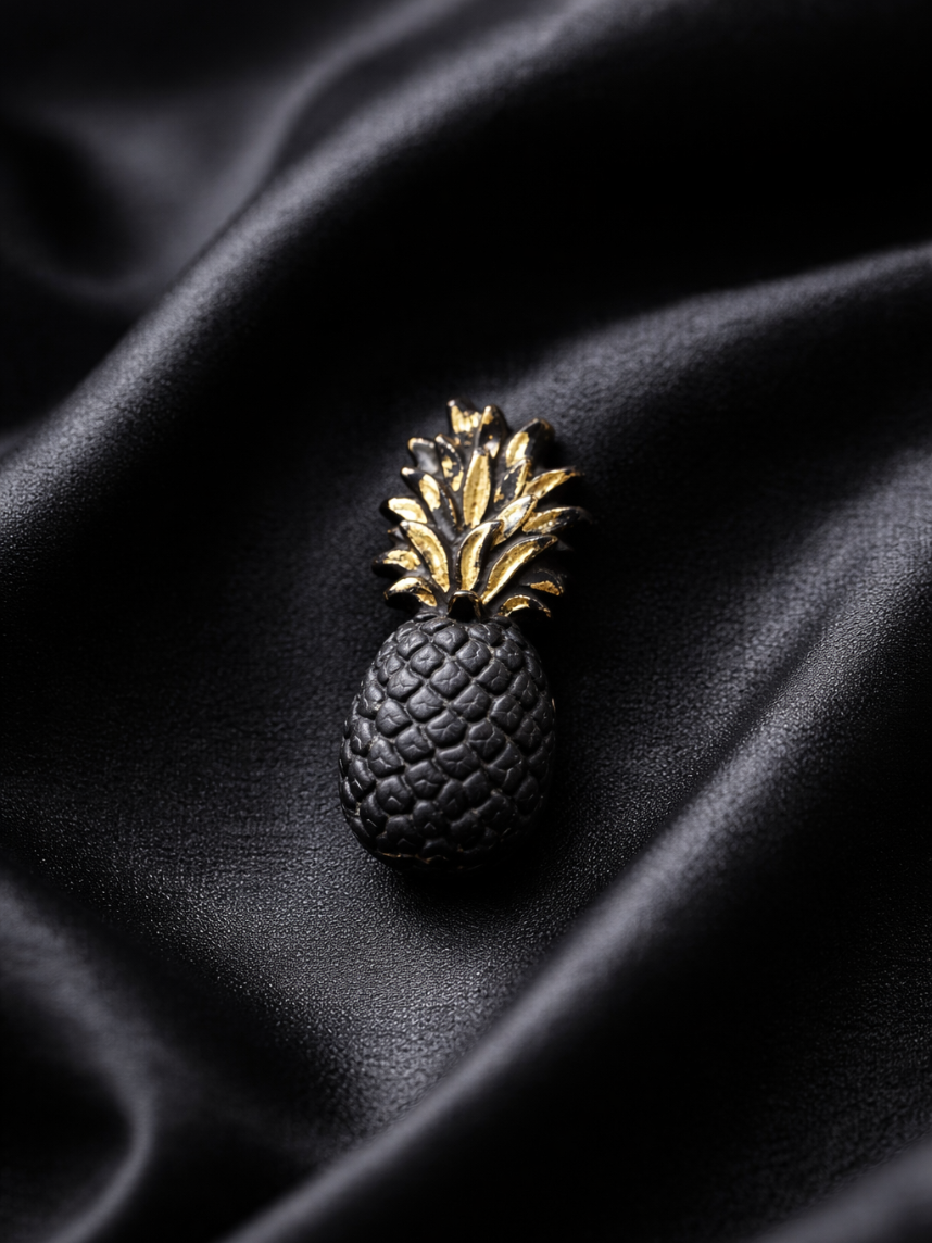 Фарфоровая брошь «Ананас» в чёрно-серебряном цвете.