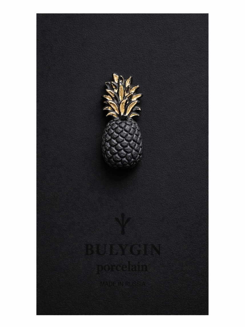 Брошь ручной работы Bulygin «Ананас», фарфор, чёрно-серебристая